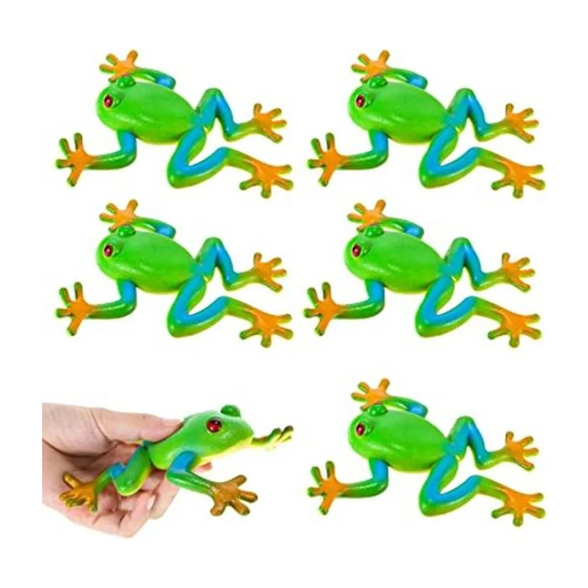 HyDren 6 piezas de juguetes de rana realistas, figuras de rana de simulación, modelo de animal de rana, suave y elástico, juguete para aliviar el estrés, juguete para el estrés y fiesta