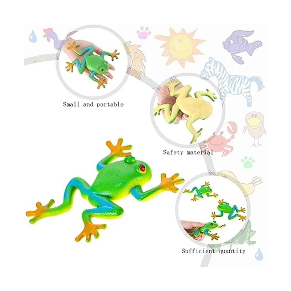 Material de calidad: estas figuras elásticas de rana están hechas de material TPR; son suaves, ligeras y prácticas, con buena sensación al tacto y durabilidad, no se dañan fácilmente; se pueden utilizar durante mucho tiempo