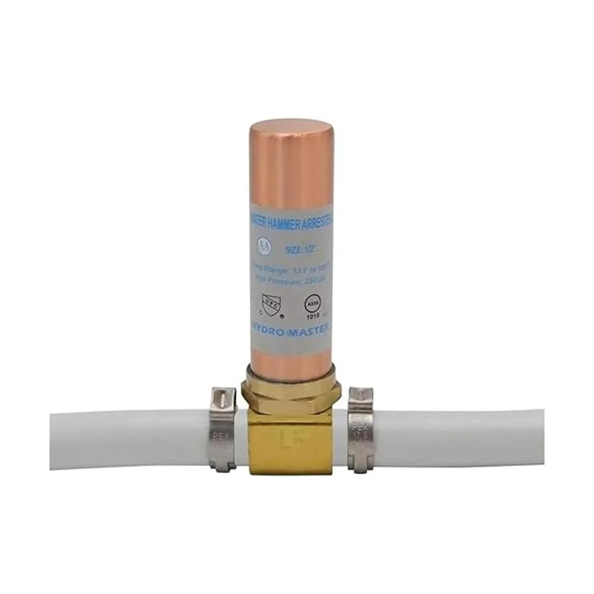 HYDRO MASTER Tee Martillo de agua Arrestor,Latón sin plomo, 12 Pex x 12 Pex