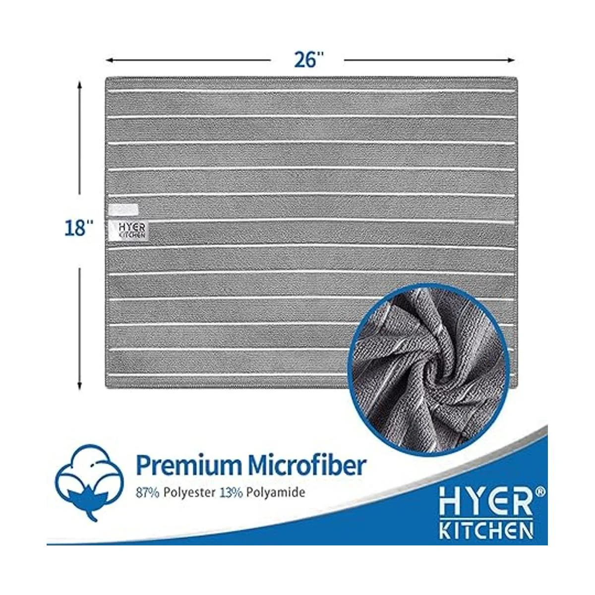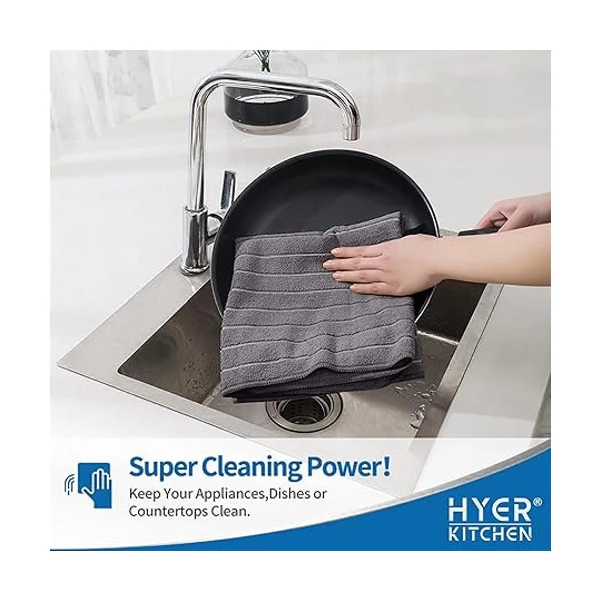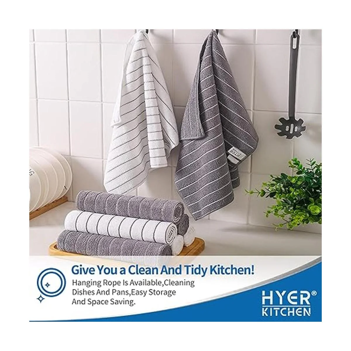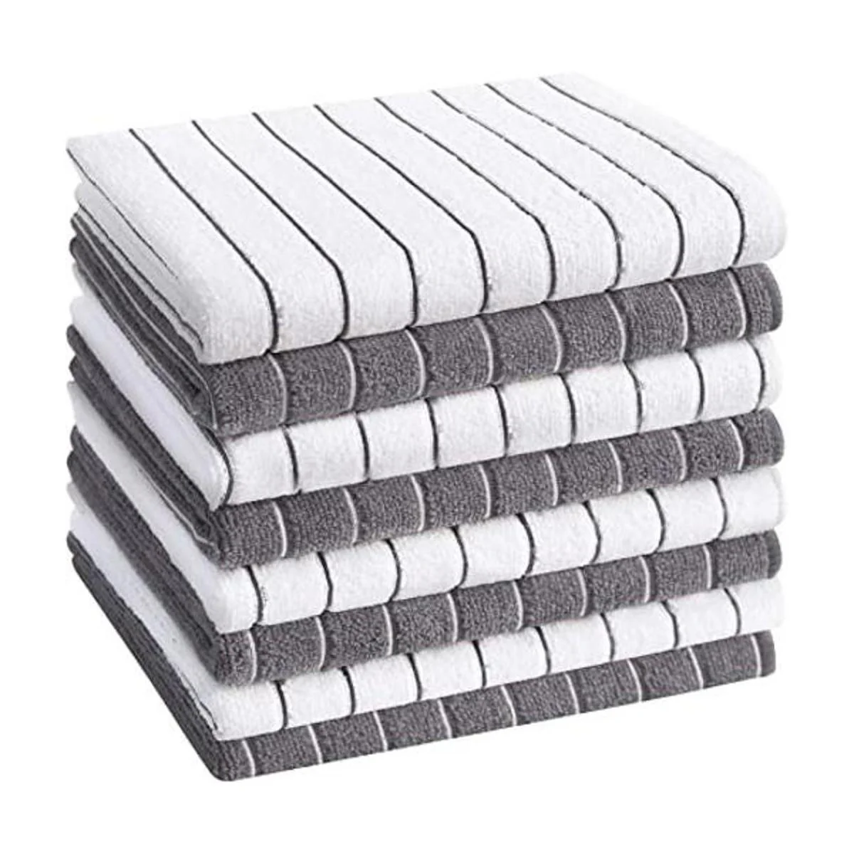 HYER KITCHEN Toallas de cocina de microfibra, diseño de rayas, súper suaves y absorbentes, paquete de 8, 18 x 26 pulgadas, gris y blanco
