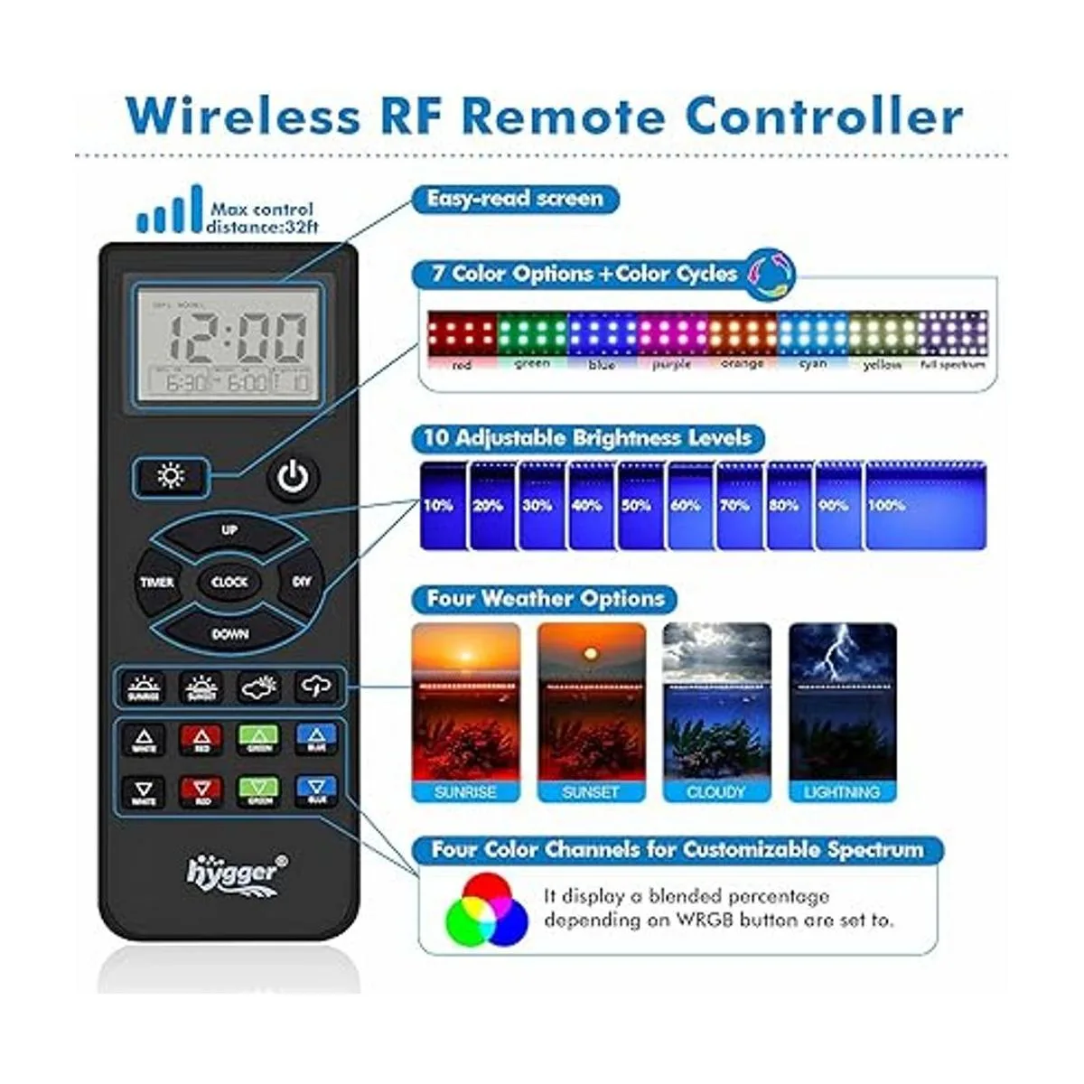 hygger Luz de acuario con control remoto avanzada, personalizable, de espectro completo, LED con tanque de agua dulce para bricolaje, predeterminado y modo meteorológico