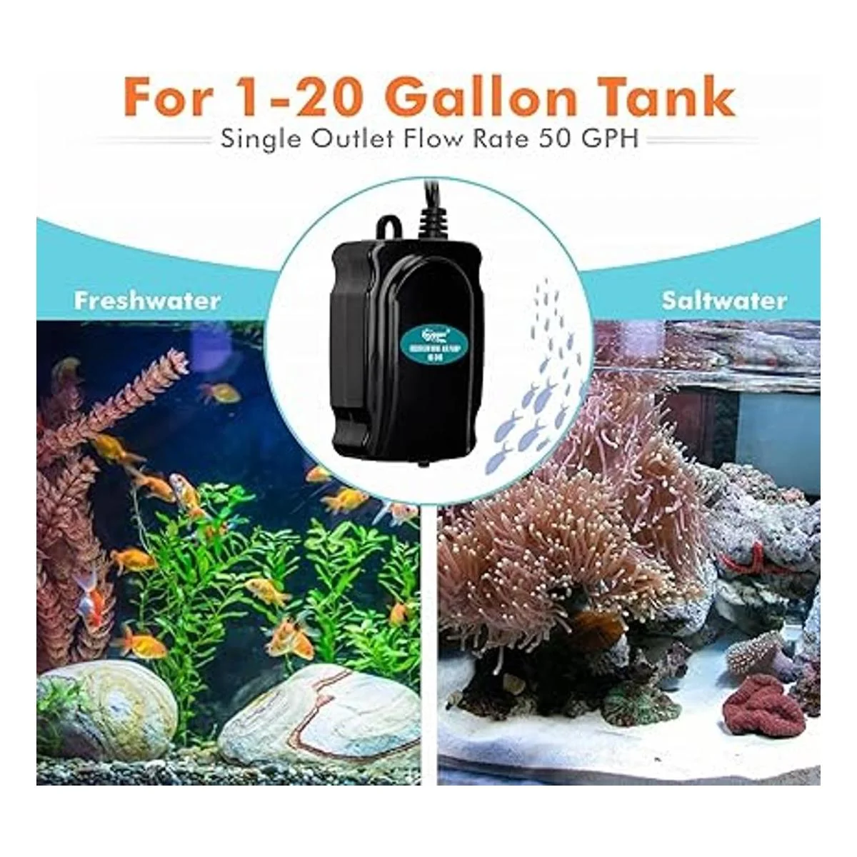 Hasta 20 galones: una gran bomba de aire de peces pequeña para acuarios de agua dulce y salada y sistemas hidropónicos de hasta 20 galones