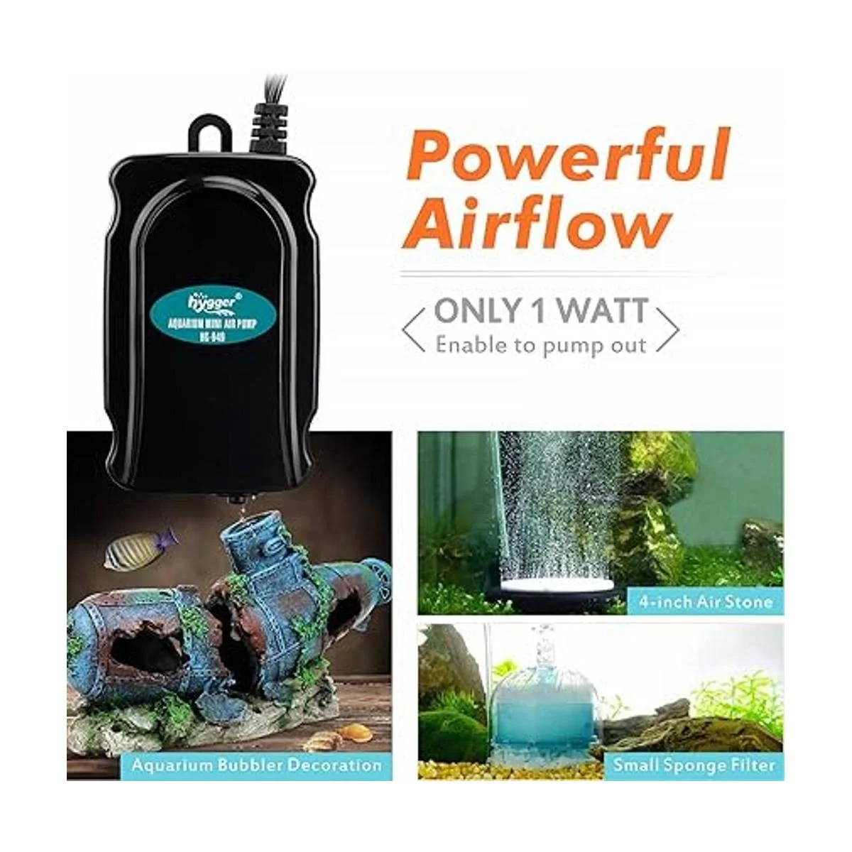 hygger Mini kit de bomba de aire para acuario, bomba de aire pequeña de 1 W para pecera de 1 a 20 galones con tubo de aire, válvula de retención de piedra 1 W