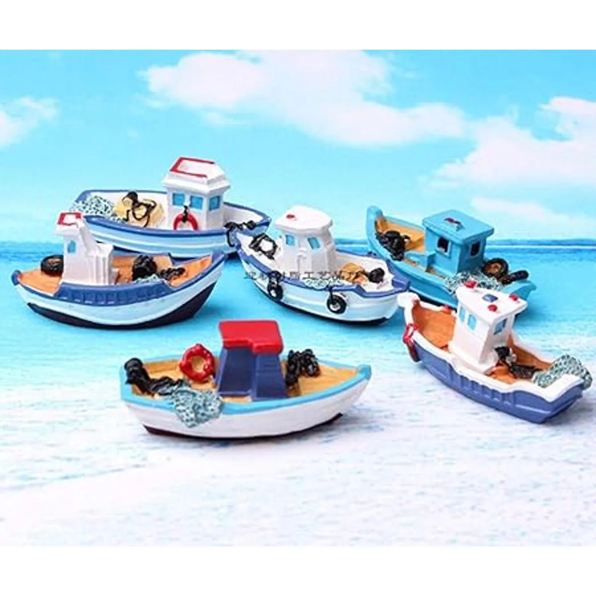 HYSTYLE 6 piezas de estilo mediterráneo en miniatura para casa de muñecas, barco, jardín de hadas, barcos en miniatura, figuras de modelo para tartas, decoración de hadas, jardín, playa, escena