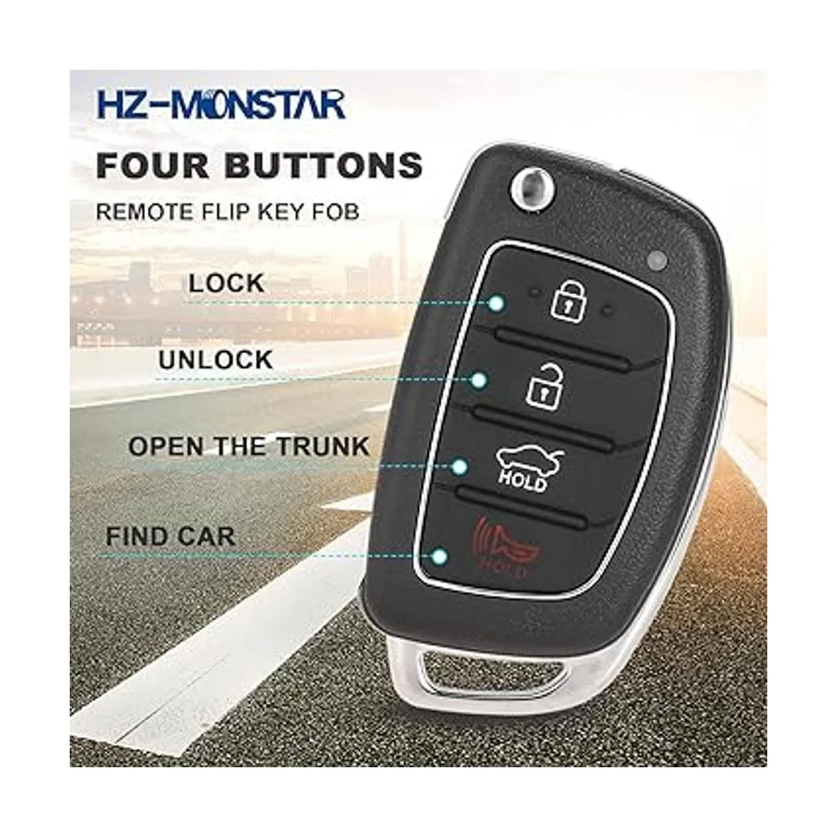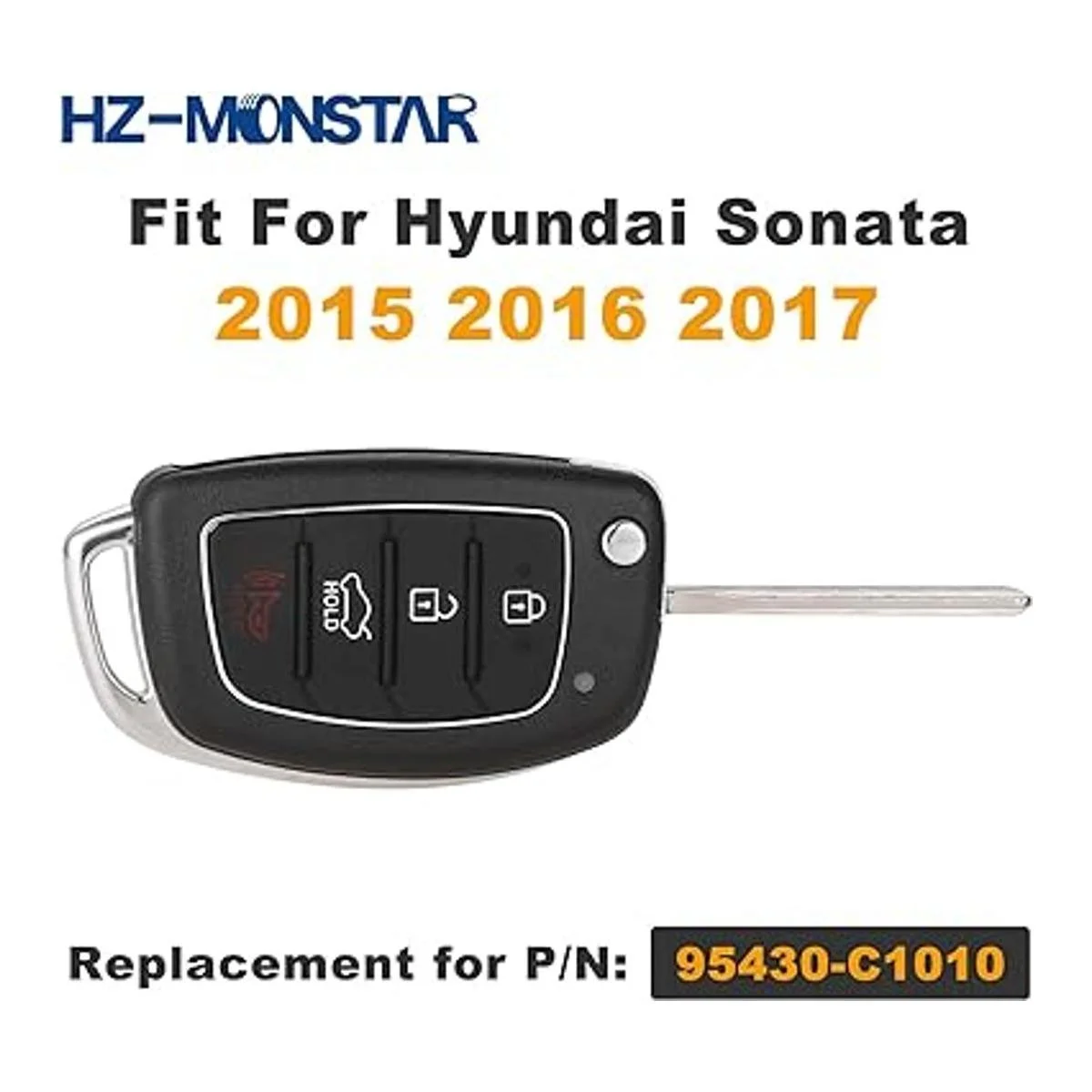 HZMONSTAR Llavero remoto de 4 botones, mando a distancia de entrada sin llave, compatible con Hyundai 2015 2016 2017 Sonata OEM, PN 95430C1010433 MHz TQ8RKE4F16