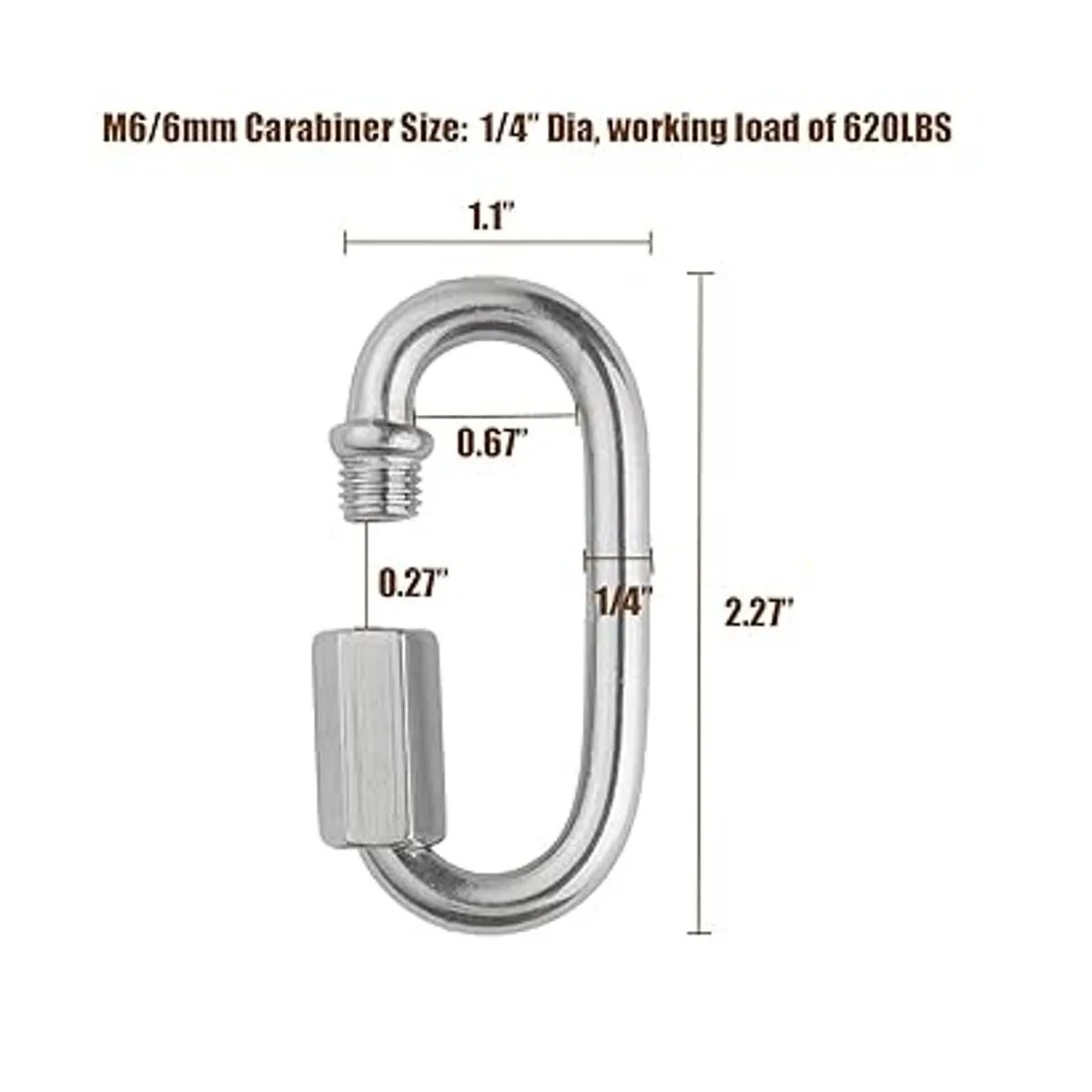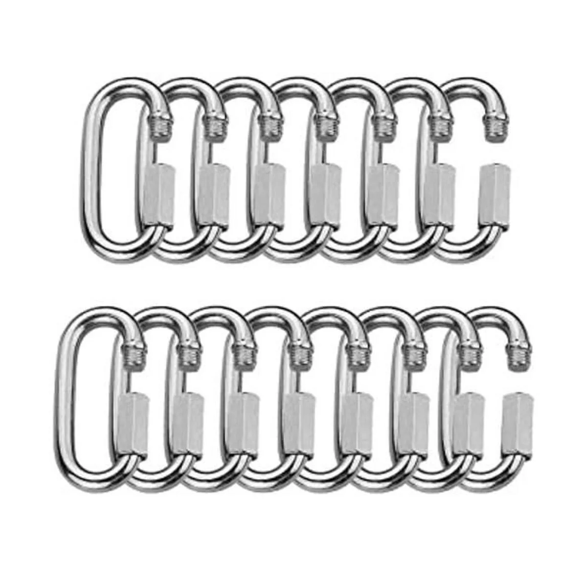 HZSOOCH Paquete de 15 mosquetones de bloqueo ovalados de acero inoxidable de 14 pulgadas, capacidad de 620 libras, cadena roscada resistente de enlace rápido para campamento, senderismo, columpio, pesca y gimnasio, M6, 15 unidades