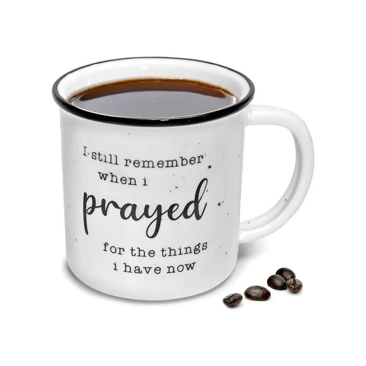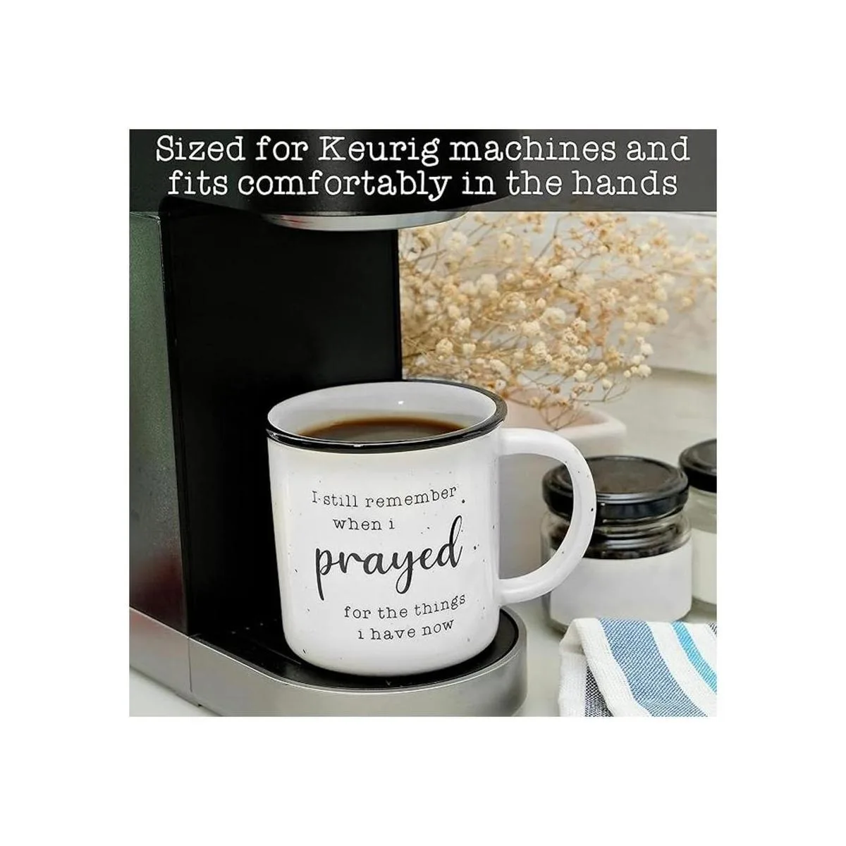 I Remember When I Prayed for the Things That I Have Now Taza de café de cerámica de 11 onzas, tazas de café de fogata con refranes inspiradores, ideas de regalo de taza cristiana de granja, tazas de café de cerámica
