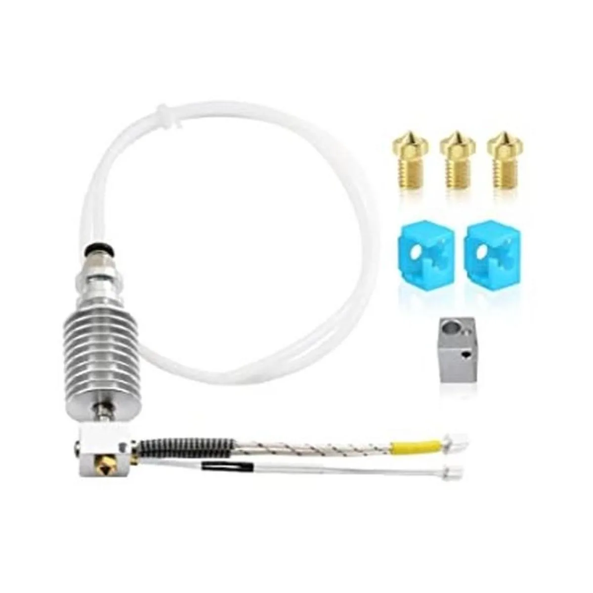 El paquete incluye: 1 juego de extremo caliente Mega V5 montado contenido: tubo PTFE, calentador de 12 V 40 W, termistor NTC 100 K, orificio de garganta de 0.161 in, conector neumático V6 PC401, boquilla de latón de 0.016 in, tubo radiante Mega V5 y bloque de calentador, 3 boquillas de latón V6, 2 x V5 x V5 x V5. Calcetines de silicona Heatblock, 1 Bloque calefactor V5 de aluminio.