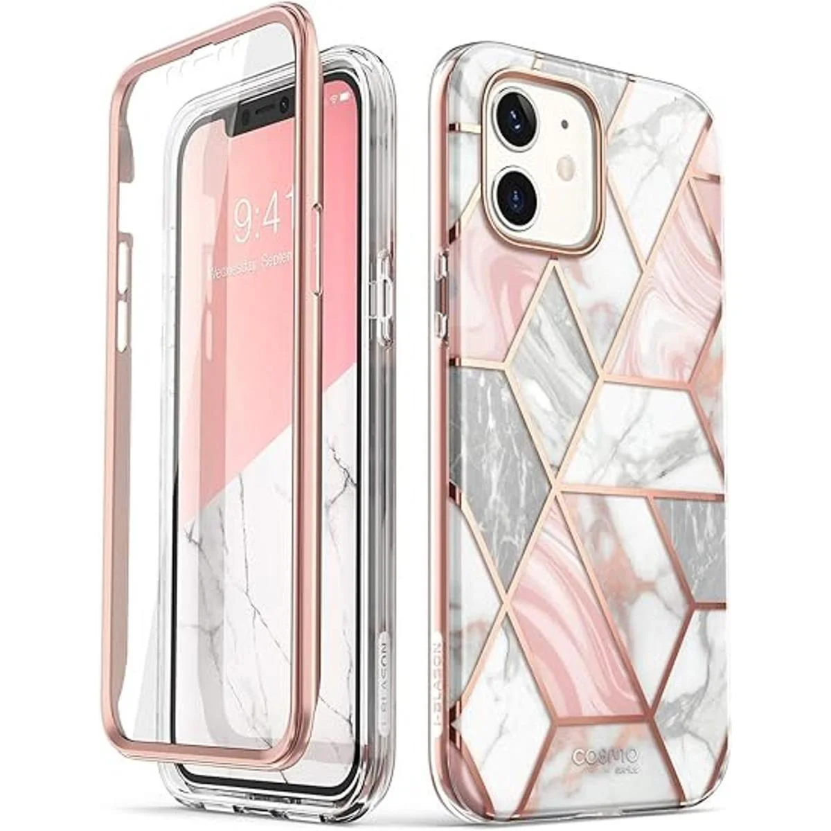iBlason Cosmo Series Funda diseñada para iPhone 12 Mini 2020, delgada y elegante funda protectora de cuerpo completo con protector de pantalla integrado, color mármol