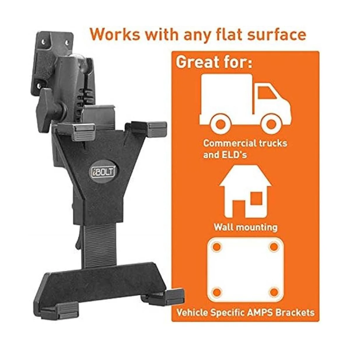 iBOLT TabDock Amplificadores Bizmount Soporte de base de taladro resistente para todas las tabletas de 7 a 10 pulgadas iPad, pestaña Samsung, ideal para vehículos comerciales, camiones y montaje en pared, cuenta con rótula de 1 pulgada 0.984 in