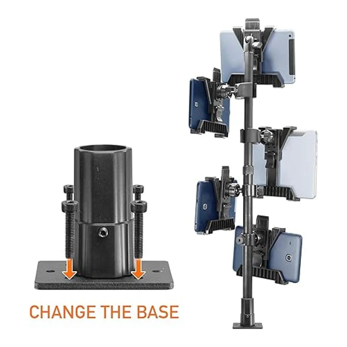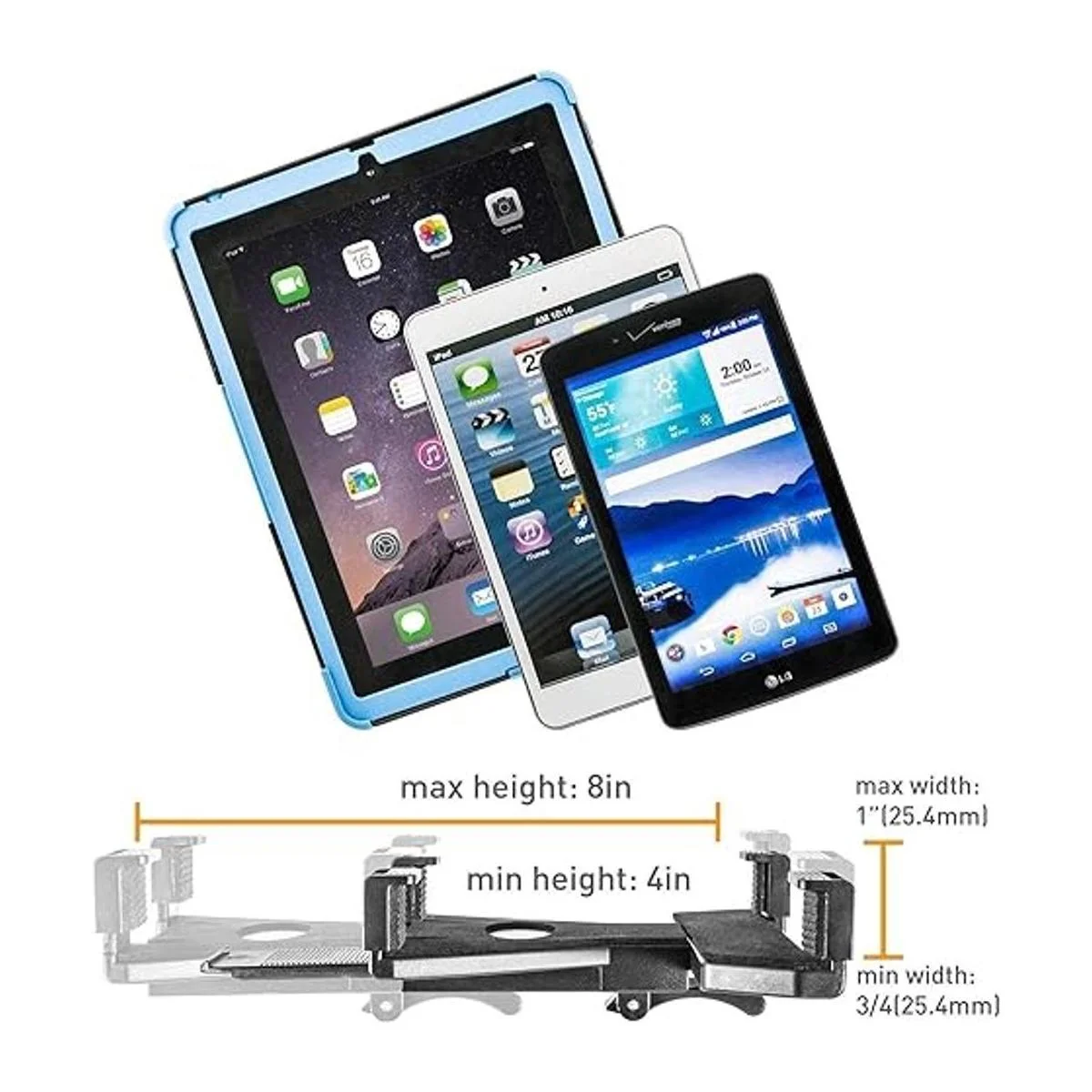 Ajustable: cada soporte para tablet gira 360 grados para una posición de visualización óptima. Inserta la tableta en los soportes horizontalmente y luego gira a la posición de visualización deseada. Sujeta tu tablet con un agarre seguro, pero es fácil de quitar según sea necesario. Incluye base de taladro opcional para una solución más permanente.