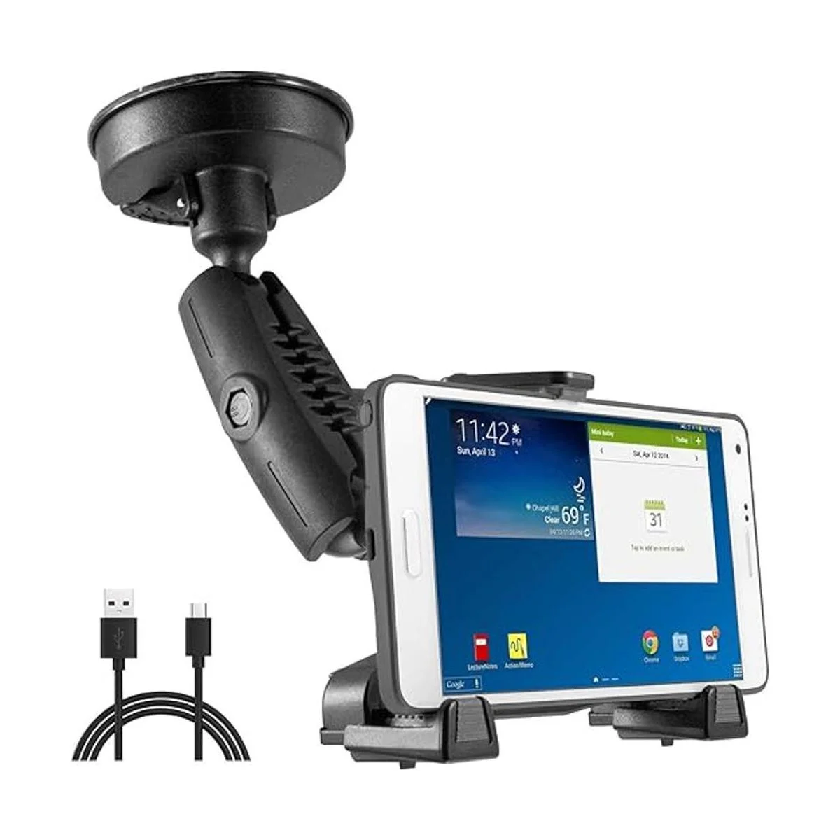 iBOLT xProDock NFC Bizmount Soporte para teléfono con base de ventosa resistente y cable microUSB de 6.6 ft, para tu parabrisas, salpicadero, para viajeros telemáticos, flotas, coches, camiones grandes, furgonetas