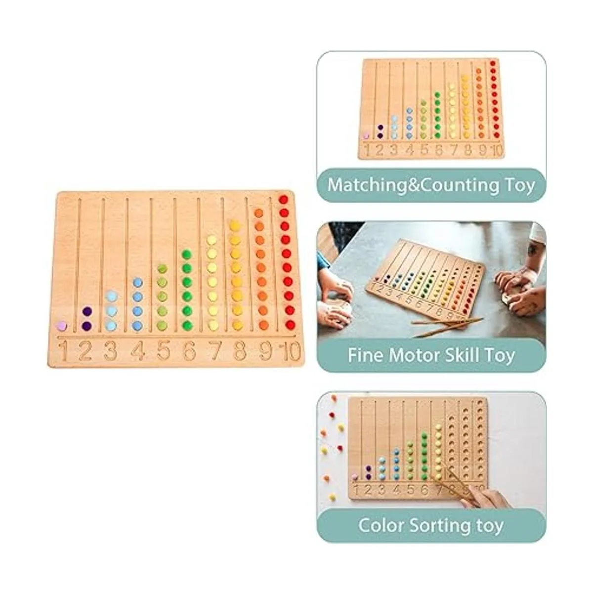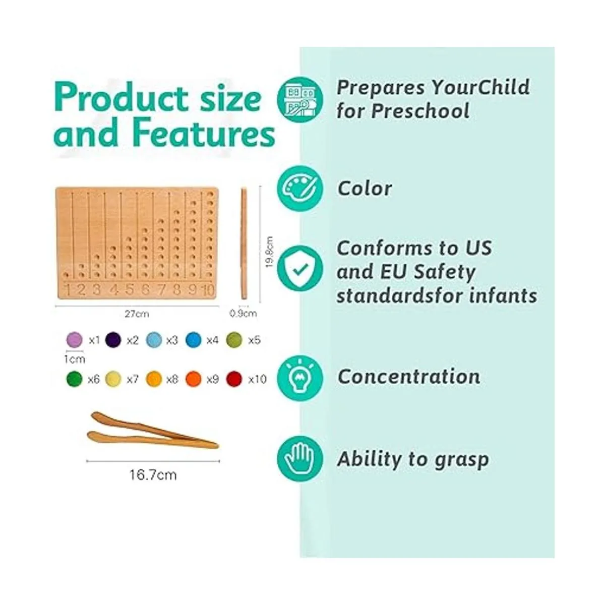 ibwaae Juego de tablas de rastreo de números de madera, juego de conteo de cuentas, juego de matemáticas preescolar, juguetes de clasificación de colores para niños, habilidades motoras finas, juguetes Montessori para niños pequeños tablero de clavija