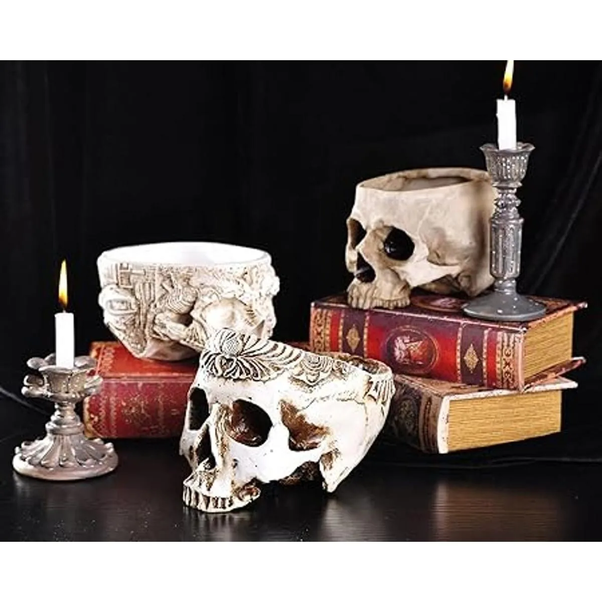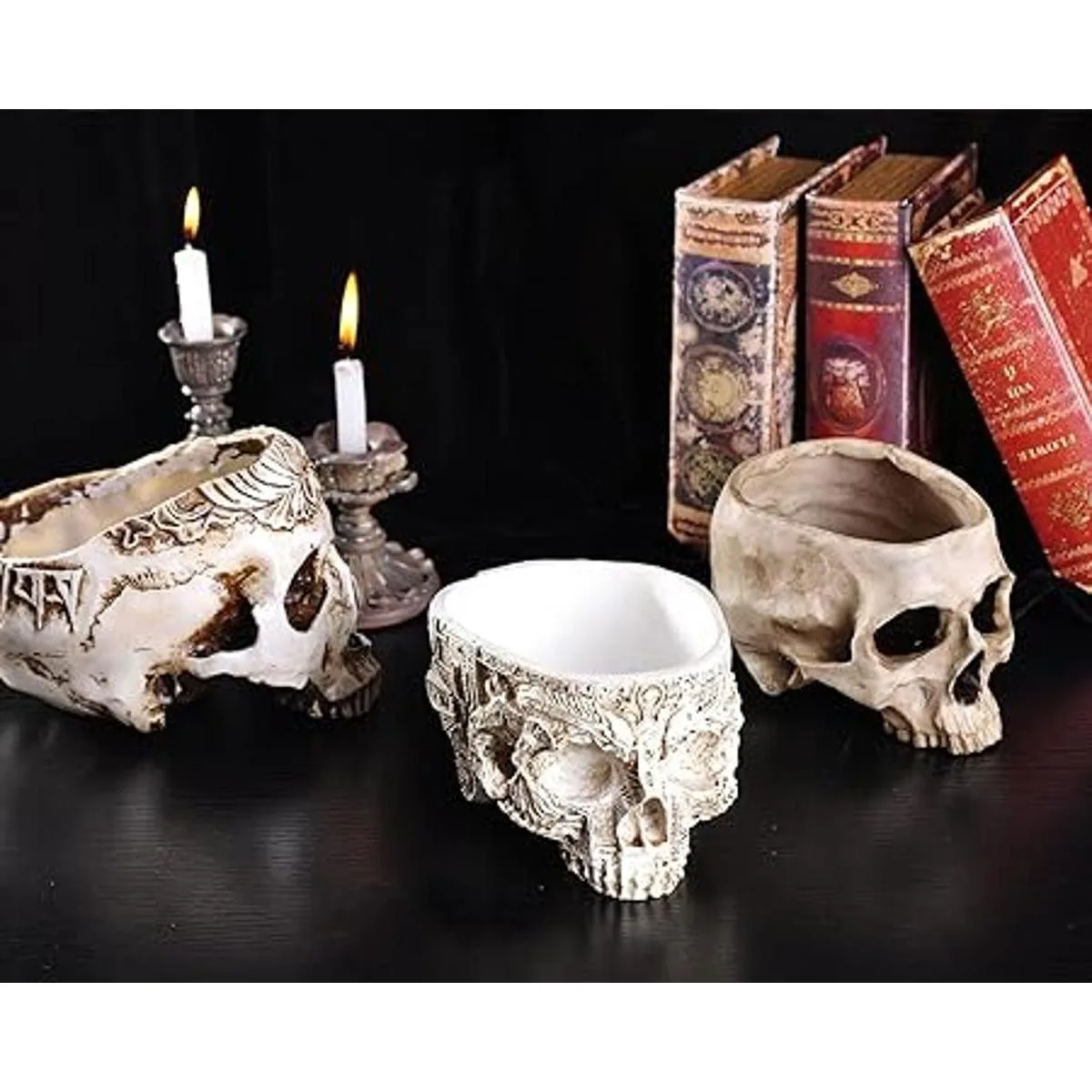 IBWell Moderno contenedor grande de 6 pulgadas con forma de calavera de resina en forma de calavera, contenedor de decoración para macetas en casa, oficina, escritorio
