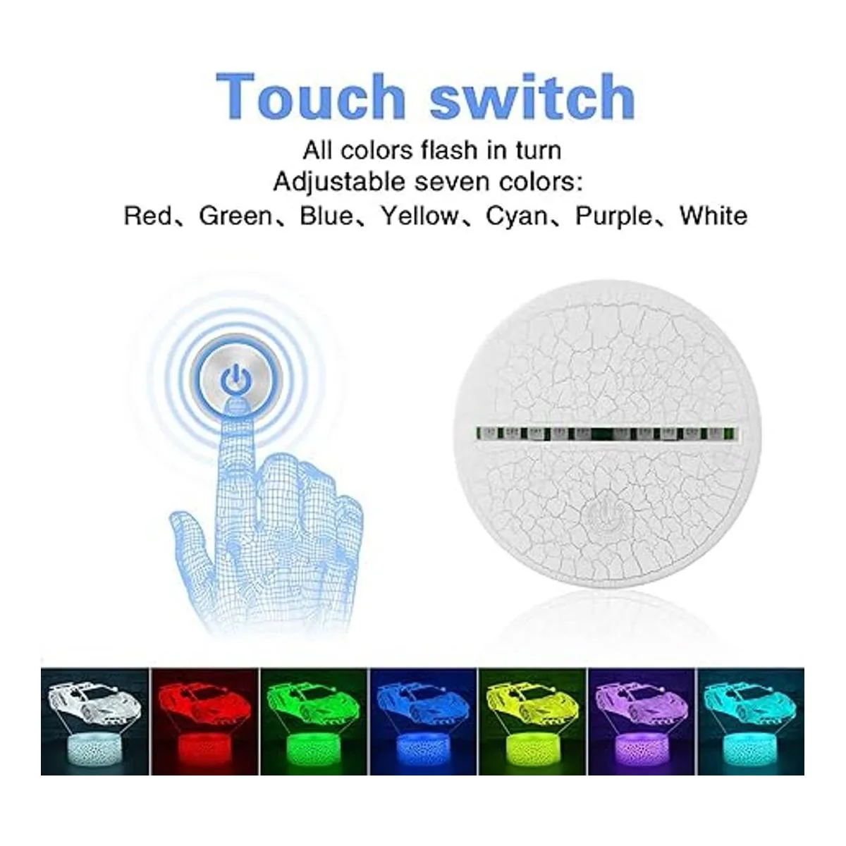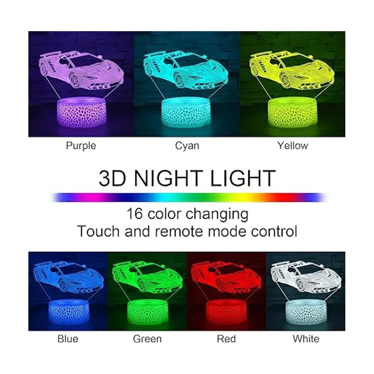 Interesante efecto visual 3D: las luces nocturnas están hechas con tecnología de grabado láser 3D para crear una hermosa ilusión óptica 3D con un diseño realista en forma de coche, es perfecto