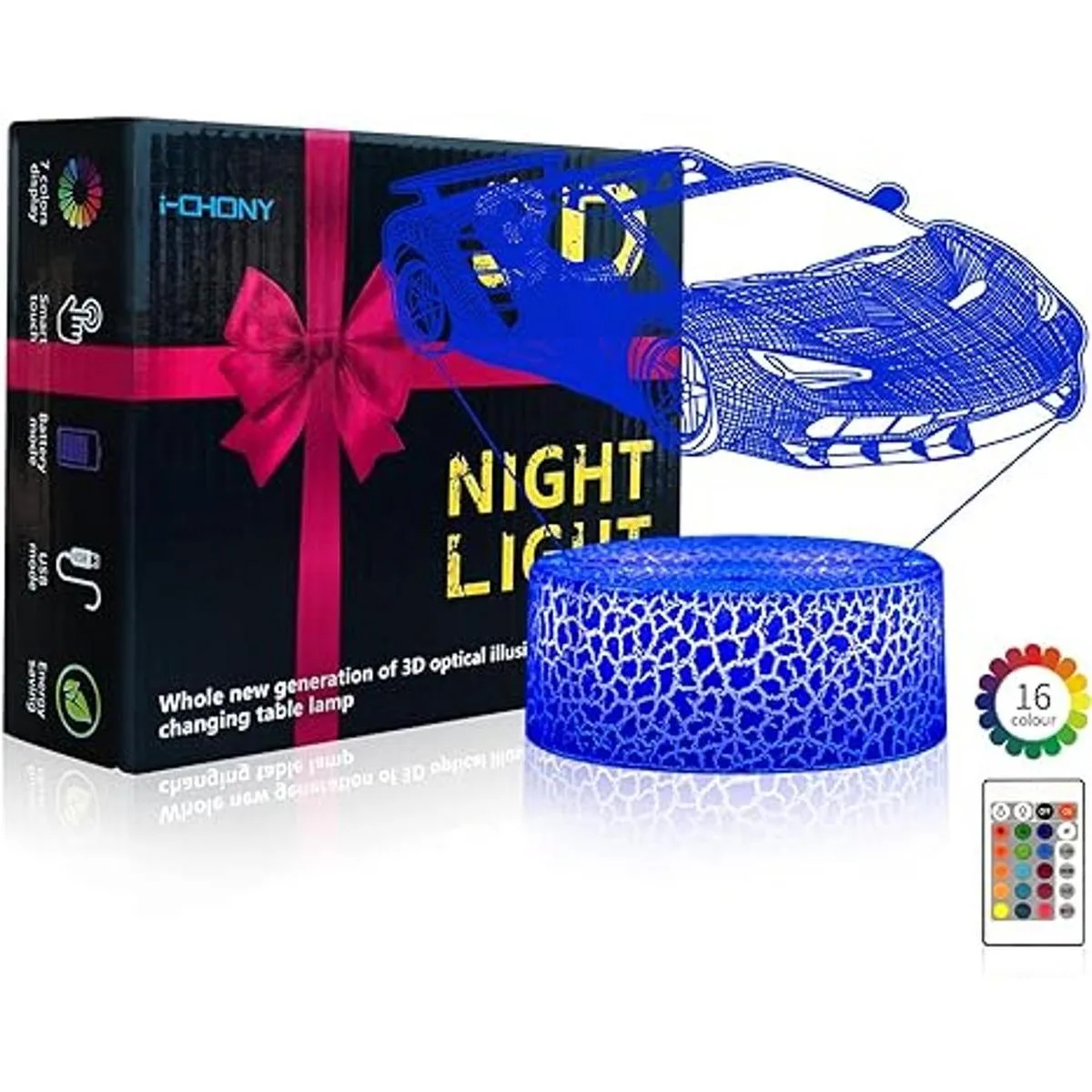 iCHONY Lámpara de escritorio de ilusión óptica 3D con control remoto y táctil inteligente, 7 o 16 colores que cambian regulable, luz LED de automóvil, regalos de cumpleaños para niños, adolescentes