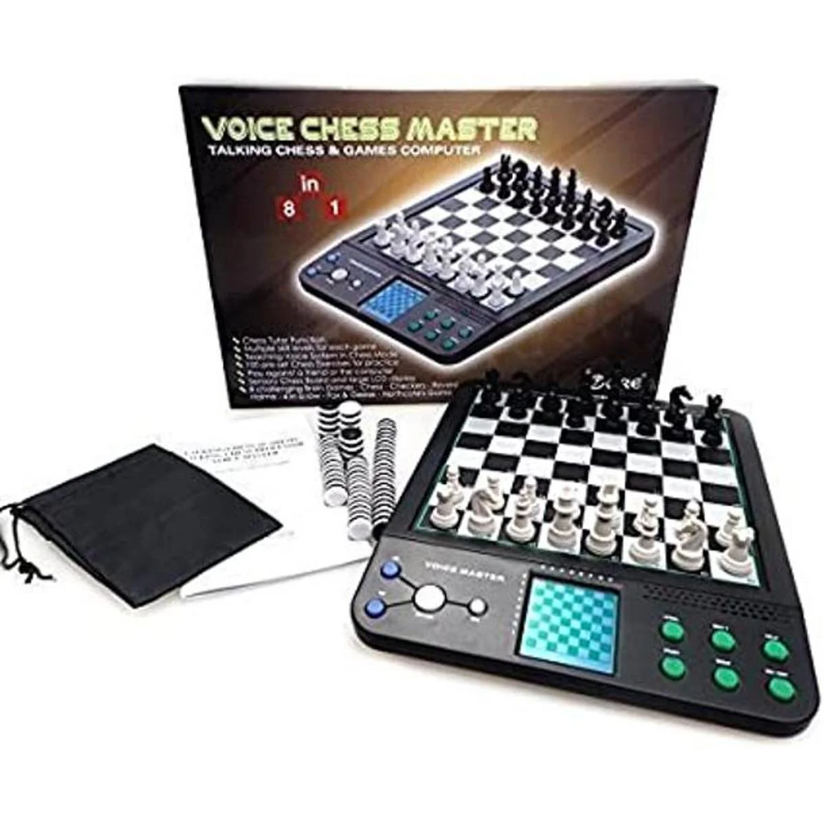 iCore Juego de computadora de ajedrez electrónico, juegos de tableros magnéticos de ajedrez de voz, juego de damas de ajedrez, juegos de mesa portátiles, tácticas de práctica de ajedrez para niños y adultos