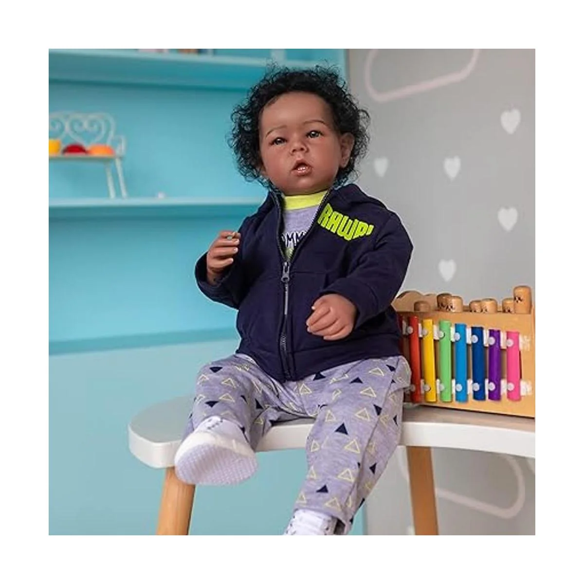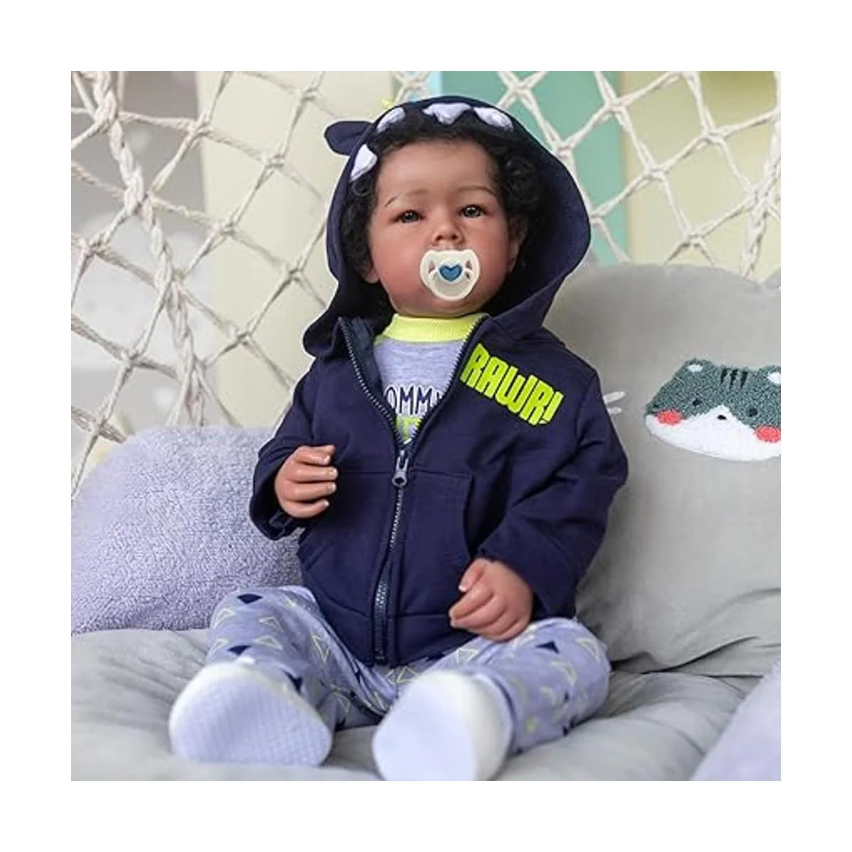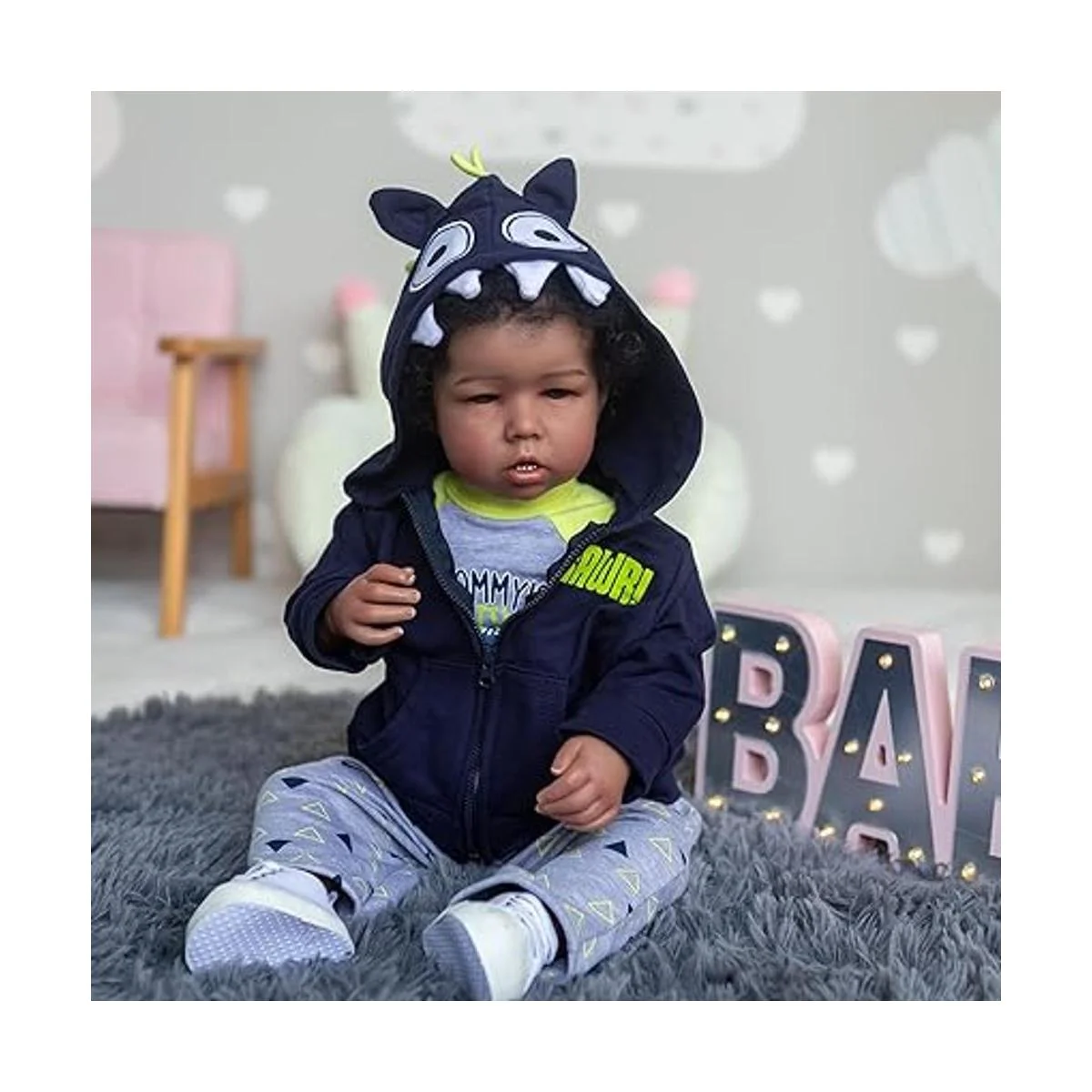 Esta muñeca negra Reborn está hecha de vinilo de silicona, extremidades y cuerpo de tela relleno de algodón PP suave, muy suave al tacto, realista y realista. La muñeca étnica Reborn pintada a mano es articulable, la cabeza y las extremidades se pueden mover libremente.