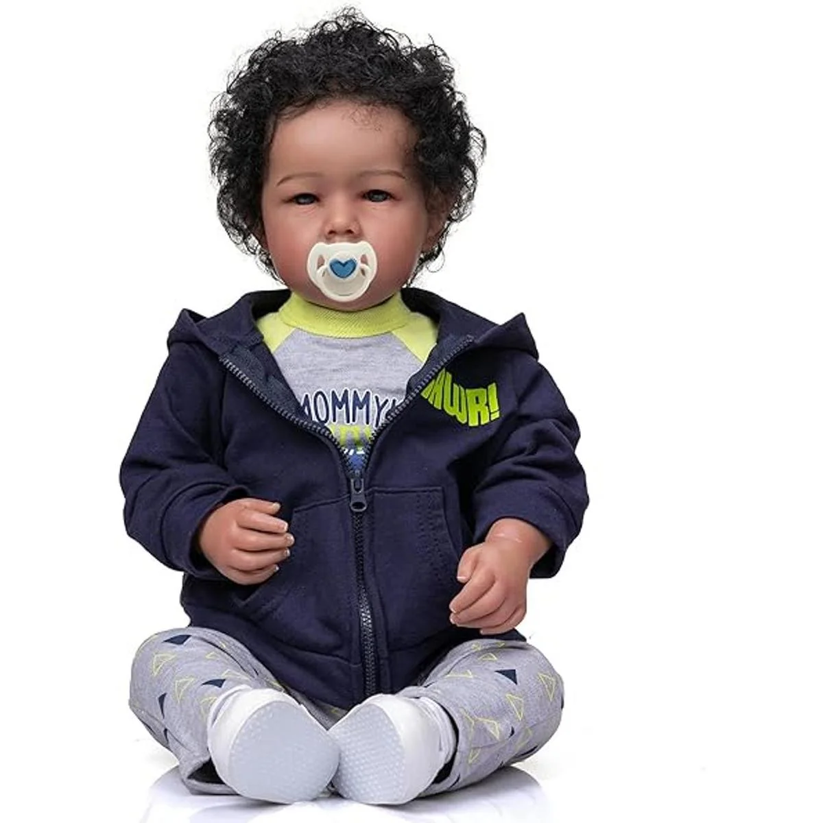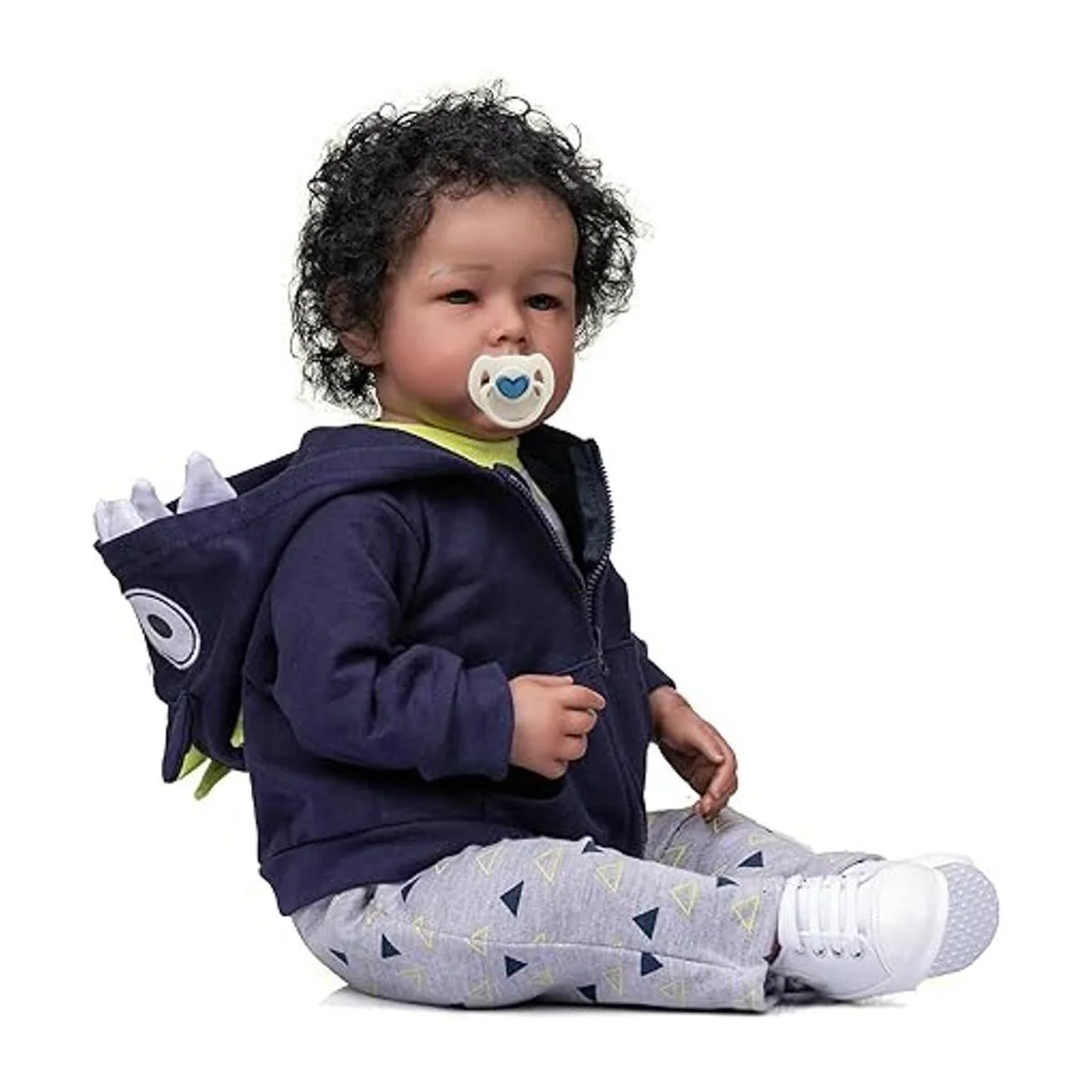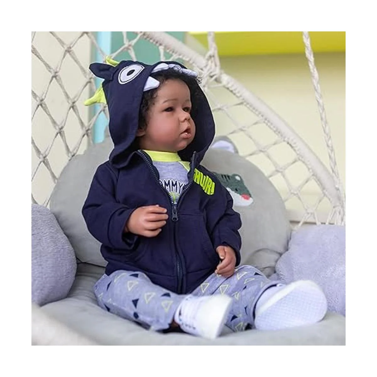 Esta muñeca negra Reborn está hecha de vinilo de silicona, extremidades y cuerpo de tela relleno de algodón PP suave, muy suave al tacto, realista y realista. La muñeca étnica Reborn pintada a mano es articulable, la cabeza y las extremidades se pueden mover libremente.