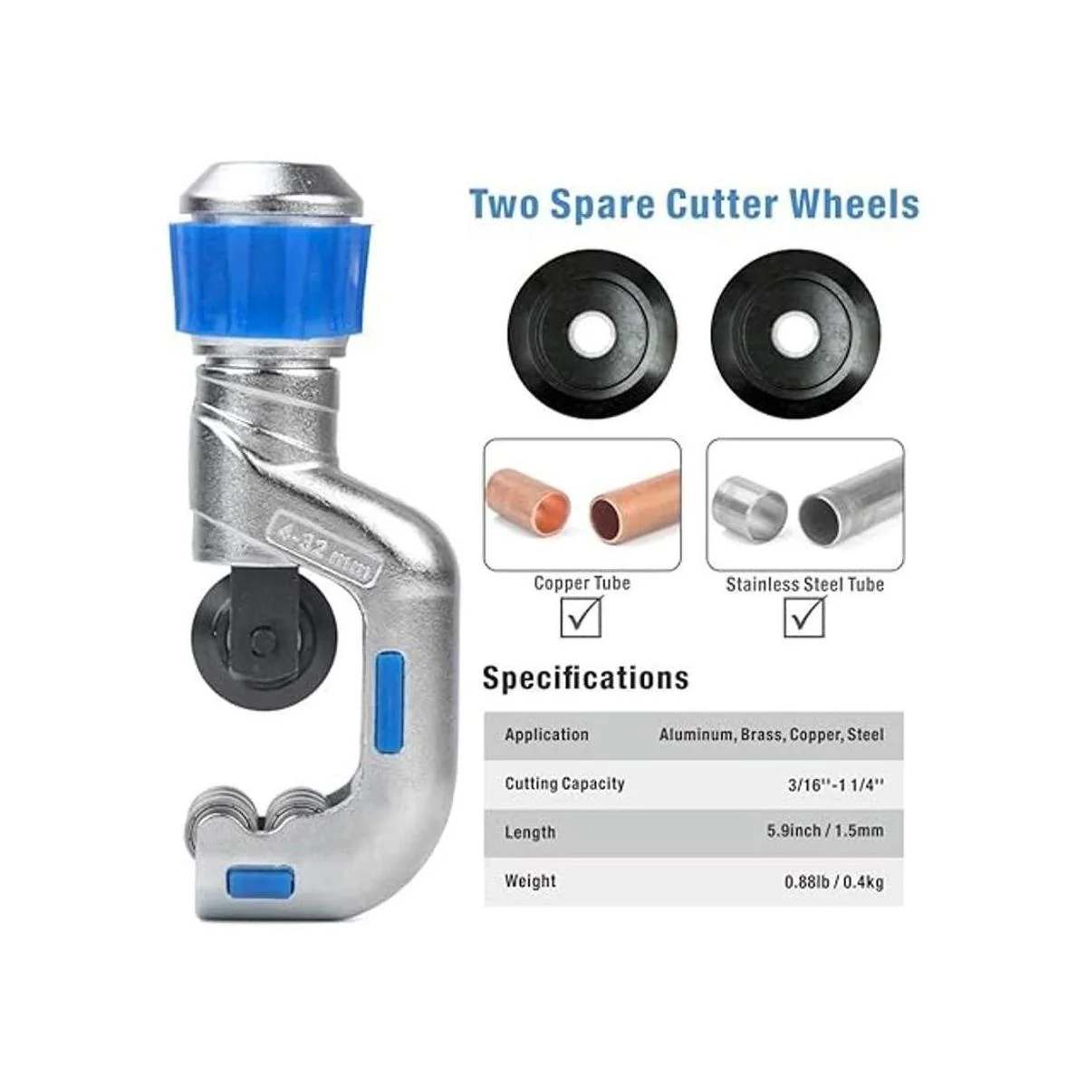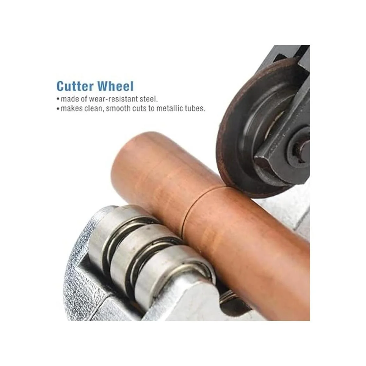 Rueda de corte libre: la hoja de repuesto está fabricada con acero de alto carbono para una larga vida útil. La molienda de precisión ofrece un filo de corte afilado. Optimizado para cortar tubos de cobre.