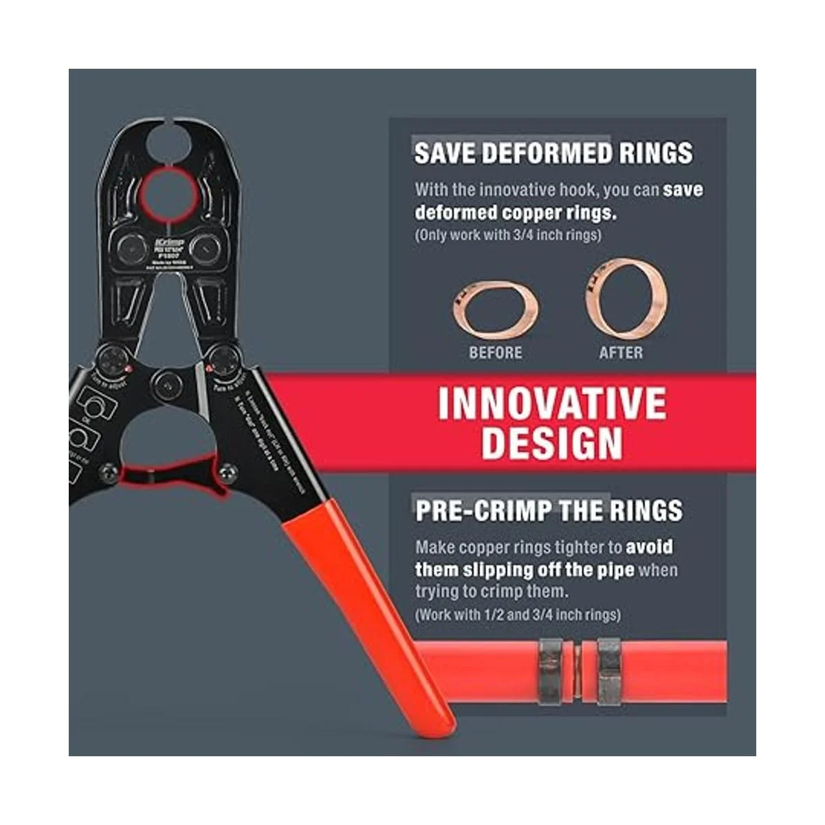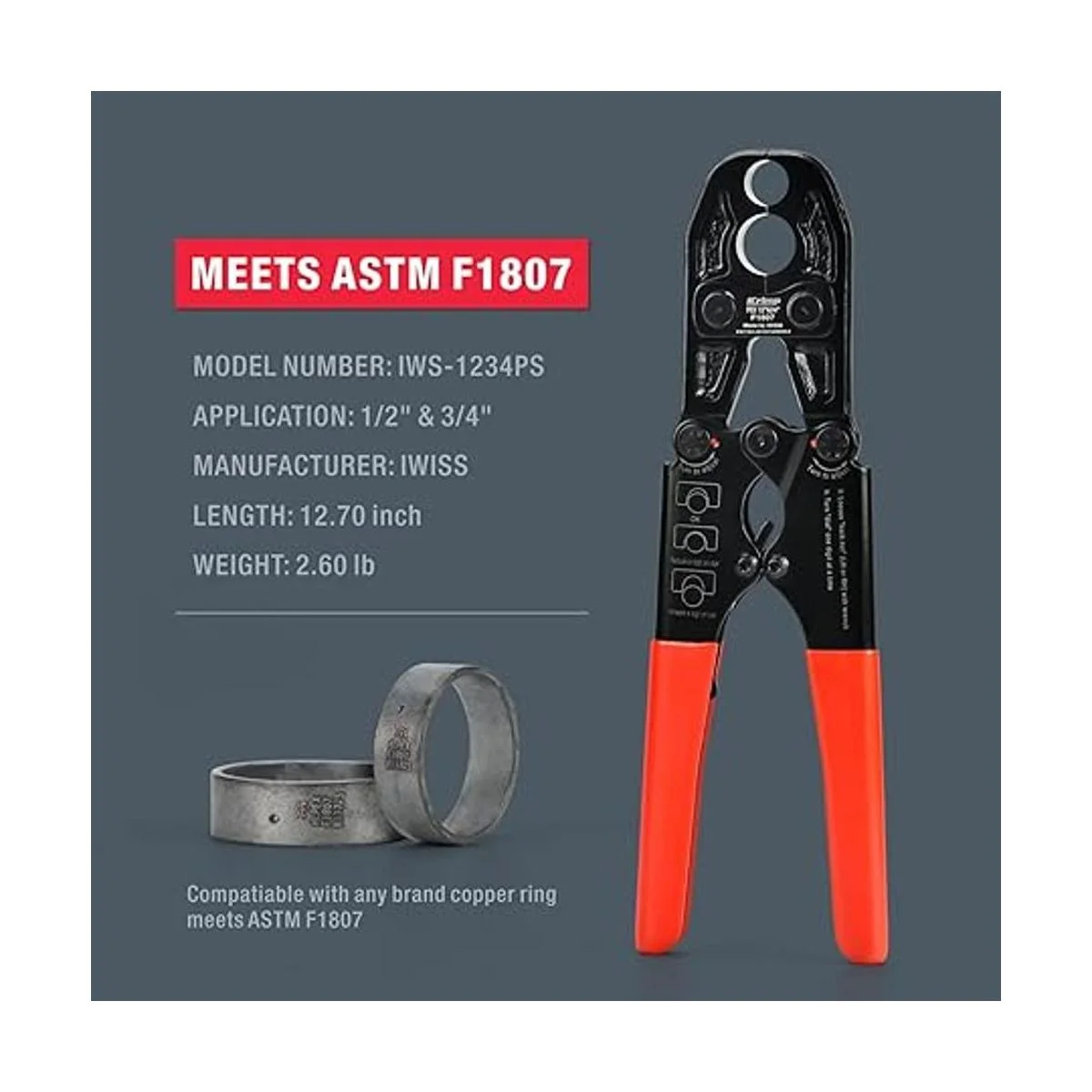 iCrimp Herramienta de crimpado de tubos Pex de 12 y 34 pulgadas para anillo de cobre con calibre cumple con el estándar ASTM 1807 fabricado por IWISS