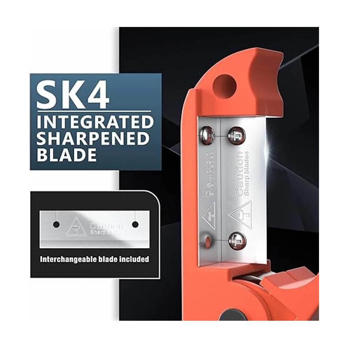 La hoja de corte está hecha de acero SK4 de alta calidad con tratamiento térmico para garantizar la nitidez, dureza y dureza de los bordes de corte.