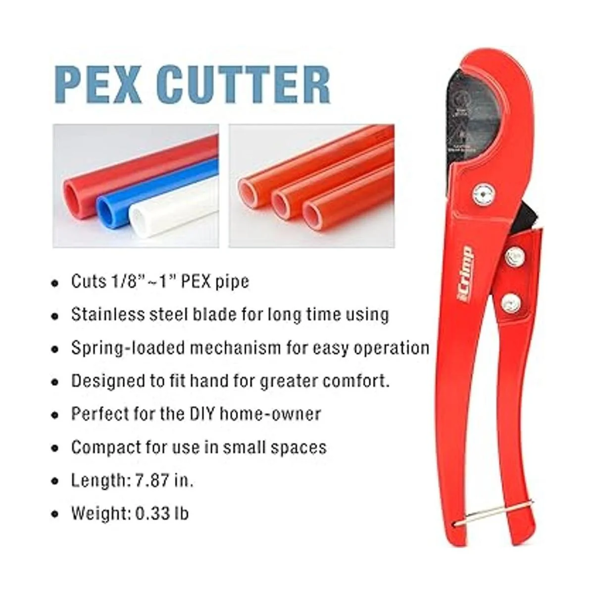 iCrimp PEX Abrazadera herramienta para abrazaderas de acero inoxidable de 38 pulgadas a 1 pulgada cumple con la norma ASTM F2098 con cortador de tubos Pex