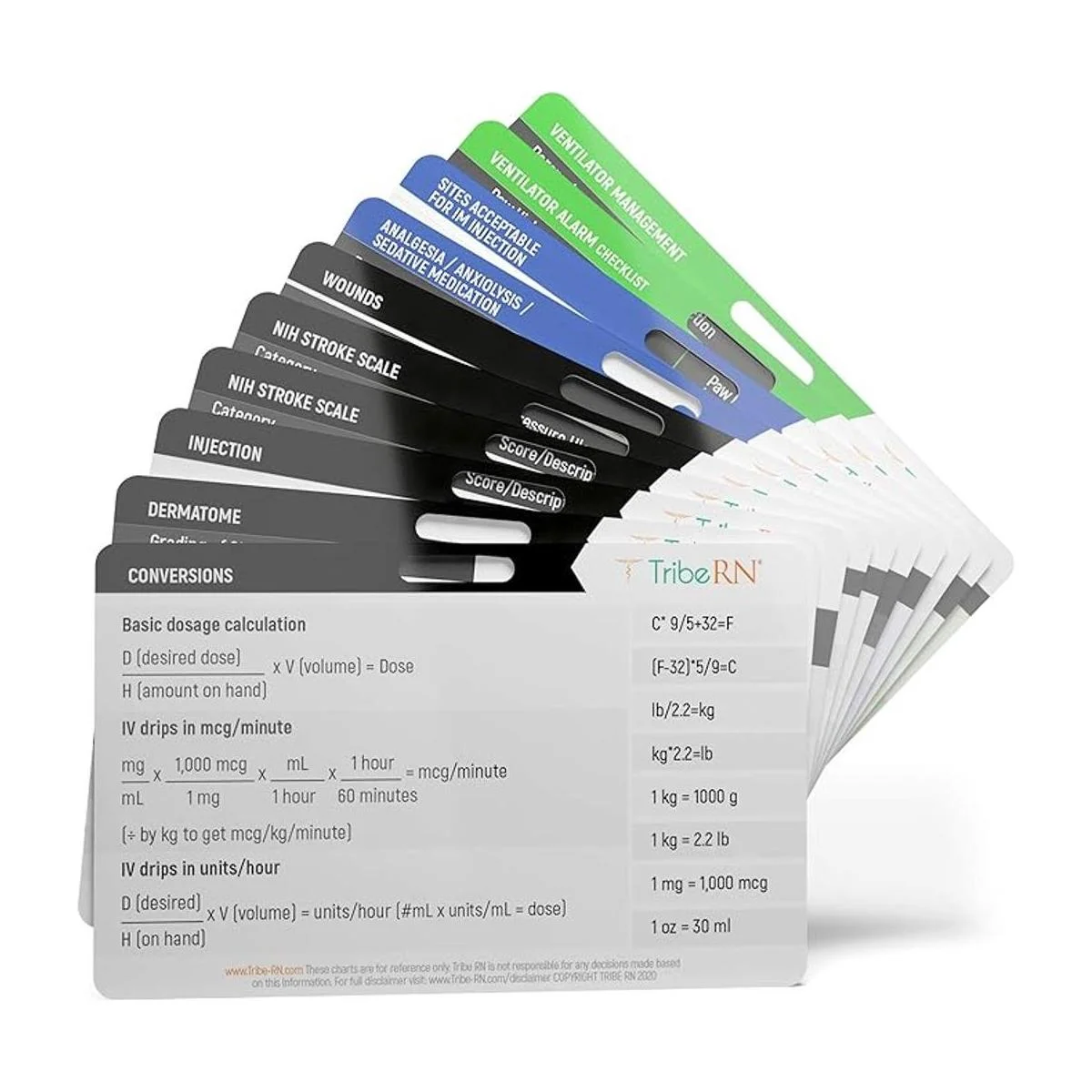 ICU ER BadgeGuru Set de Tribe RN 10 tarjetas de referencia de insignia de enfermería UCI diseñadas para ER, UCI, enfermeras de emergencia, paramédicos y EMTs UCI