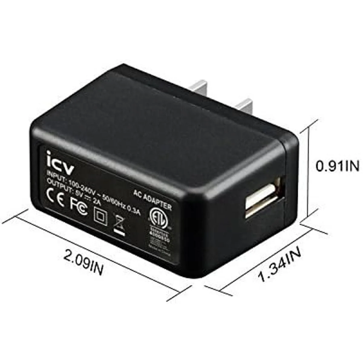 icv Cargador de pared USB, adaptador de corriente alterna de 5 V 2 A con enchufe de EE. UU. para teléfono, tableta y otros dispositivos alimentados por USB relacionados, pequeño y ligero, diseñado para la seguridad