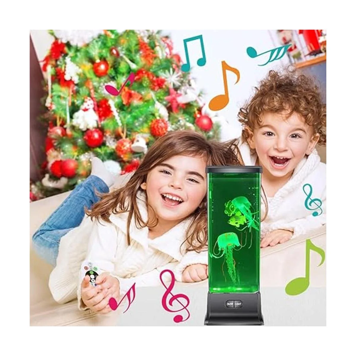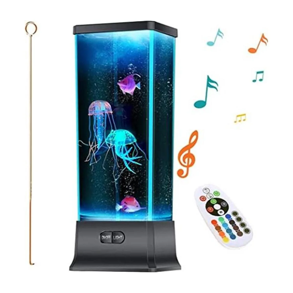 Todo en uno: CALOVER combina lámpara de medusas, máquina de ruido blanco, máquina de sonido de música, luz nocturna de guardería de bebé y temporizador en un dispositivo inteligente de mesita de noche, personaliza el color, el brillo, el sonido y el nivel de volumen y crea el ambiente perfecto para dormir en la habitación