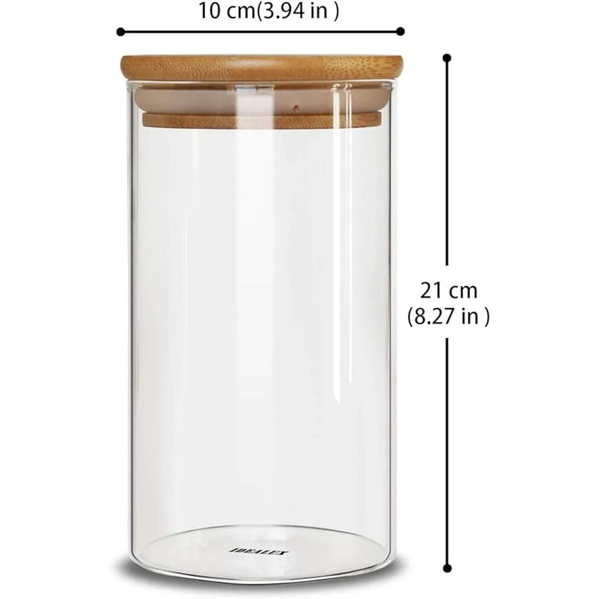 Tapas de madera de alta calidad: la tapa de madera es de color madera natural y el compañero perfecto en la cocina. Es resistente a la suciedad y se puede limpiar con toallas de papel polvorientas. 100 vidrio de borosilicato sin BPA, la tapa es un material resistente a la corrosión certificado por laboratorio, a prueba de fugas, sin productos químicos y sin plomo, absolutamente seguro para almacenar tu comida y organizar tu cocina