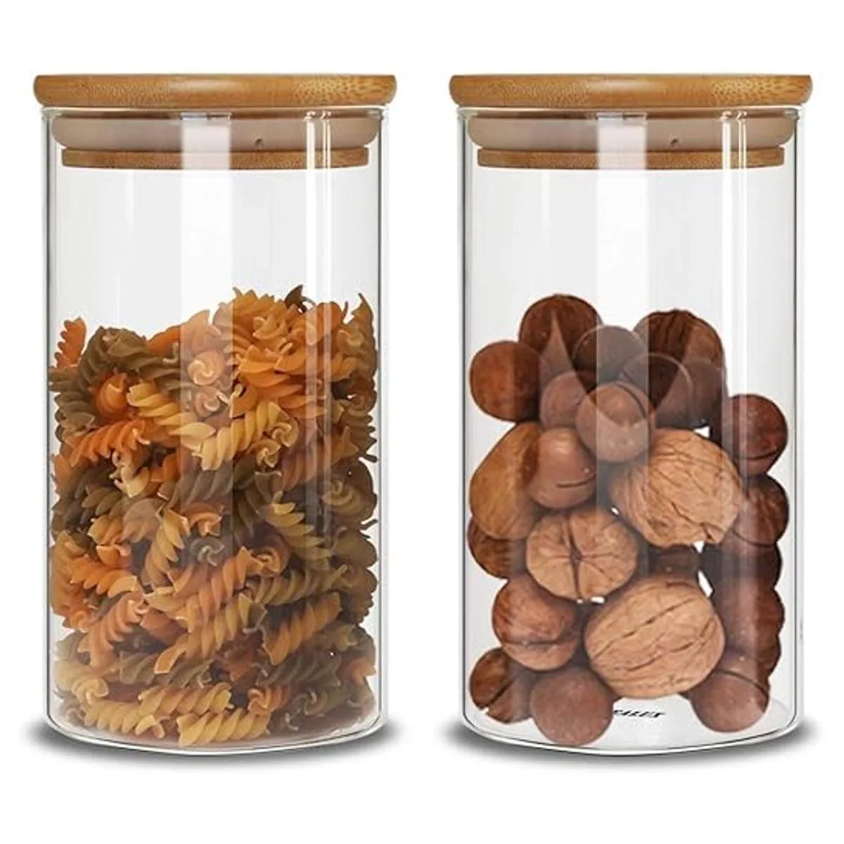 IDEALUX Juego de 2 tarros de almacenamiento de vidrio 48 oz47.3 fl oz con tapa de bambú hermética, tarros de inicio de masa madre de vidrio, recipientes de cocina apilables, perfectos para galletas de café en grano, arroz, azúcar, harina, pasta, masa madre, frutos secos, café
