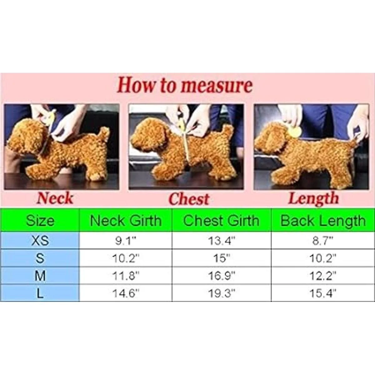 Aviso: no elijas el tamaño según su criterio de medición usual; mide el contorno del cuello, el contorno del pecho y la longitud de la espalda y elige el tamaño correcto según la información en la descripción.