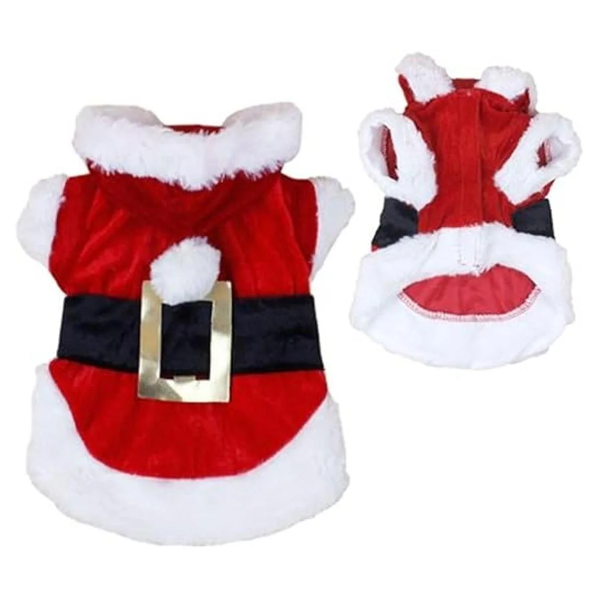 Idepet Disfraz de perro de Papá Noel, ropa de Navidad para mascotas, abrigo con capucha para perro, ropa para mascotas, Chihuahua, Yorkshire Poodle