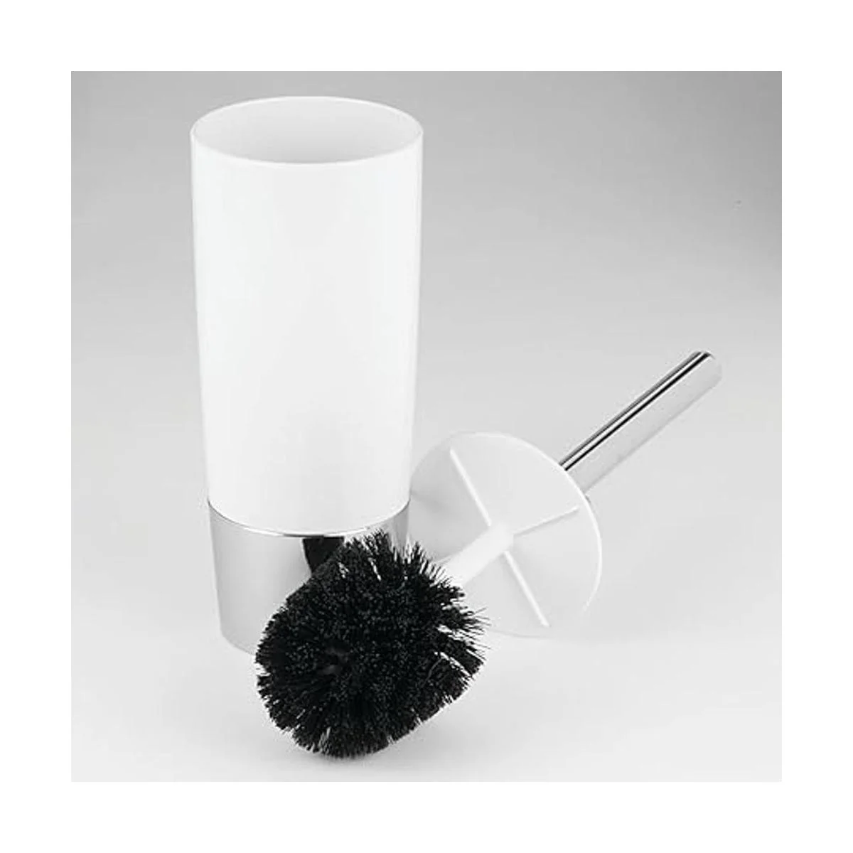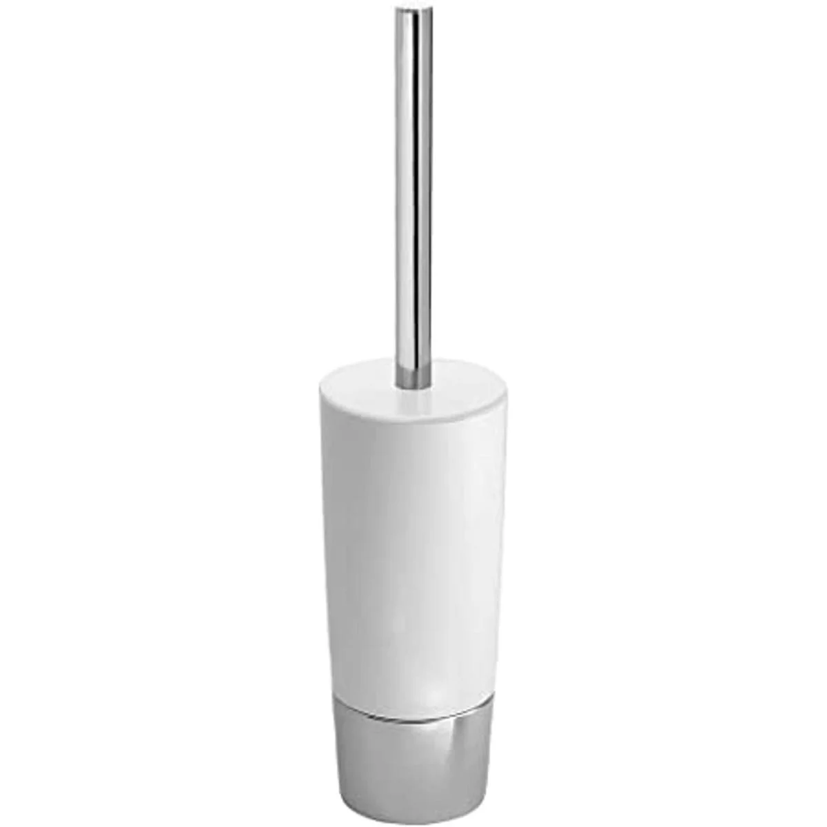 iDesign 99000 Duetto Escobilla y soporte para inodoro de plástico, juego delgado para limpieza y almacenamiento de baño, 3.9 x 3.9 x 1.6 in, color blanco y cromado