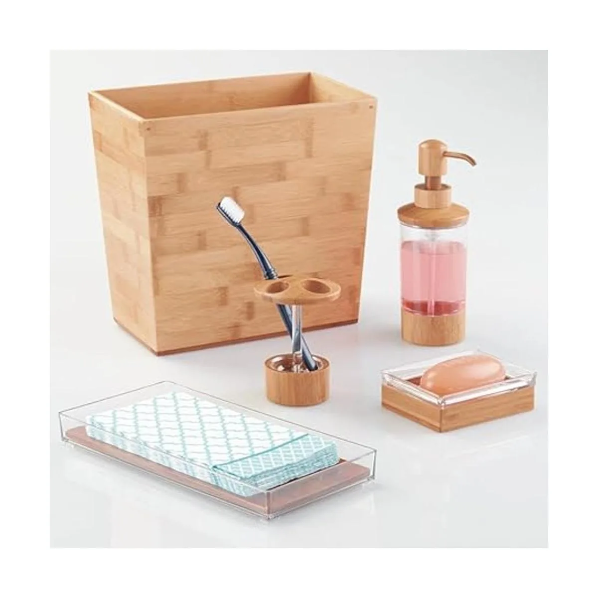 Pequeño bote de residuos: el basurero rectangular de bambú iDesign Formbu cabe en espacios reducidos en el baño, cocina, dormitorio, lavandería, oficina, dormitorio y más para proporcionar una cómoda eliminación de basura donde lo necesites.