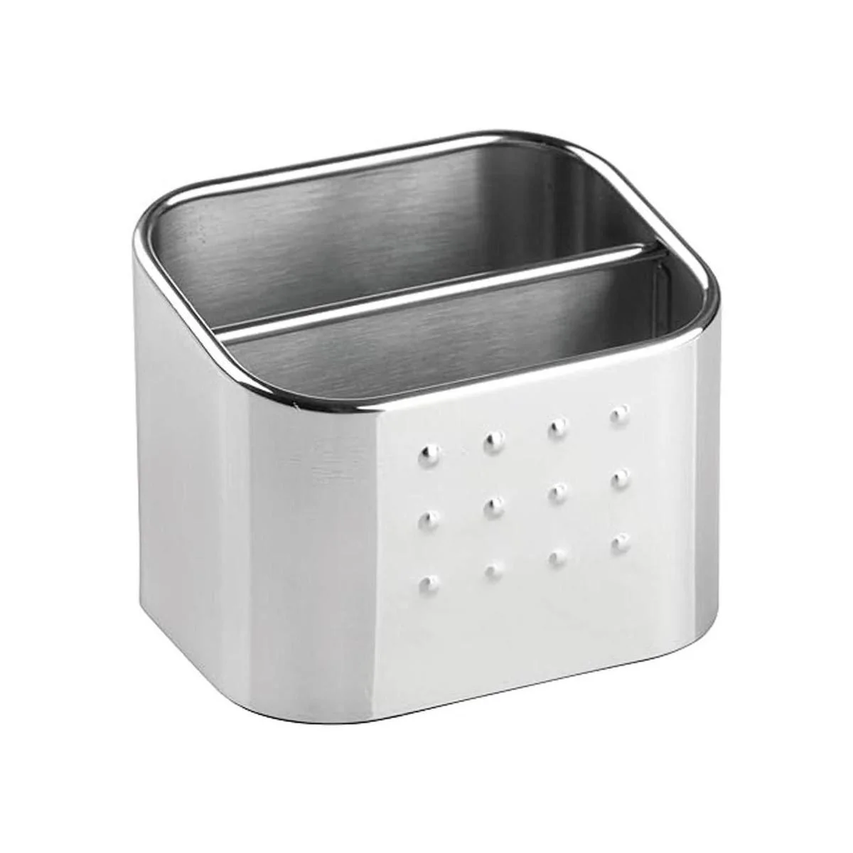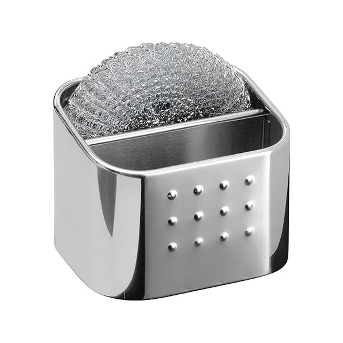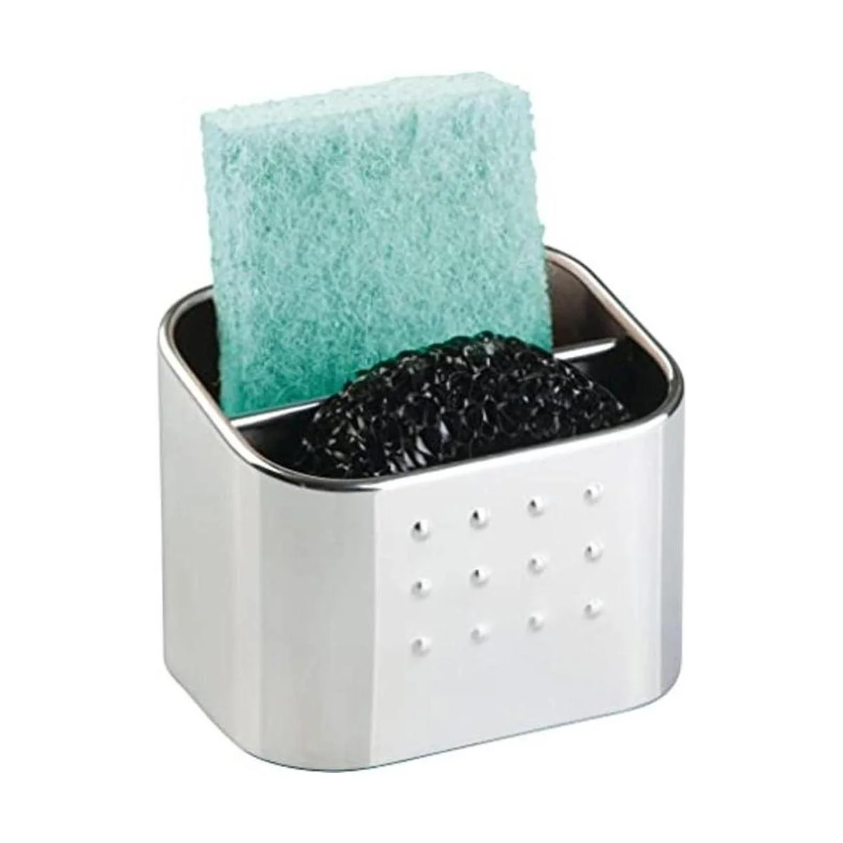 iDesign Forma Juego organizador de fregadero de acero inoxidable pulido con esponja y exfoliante, 3.1 x 4 x 3.1 pulgadas