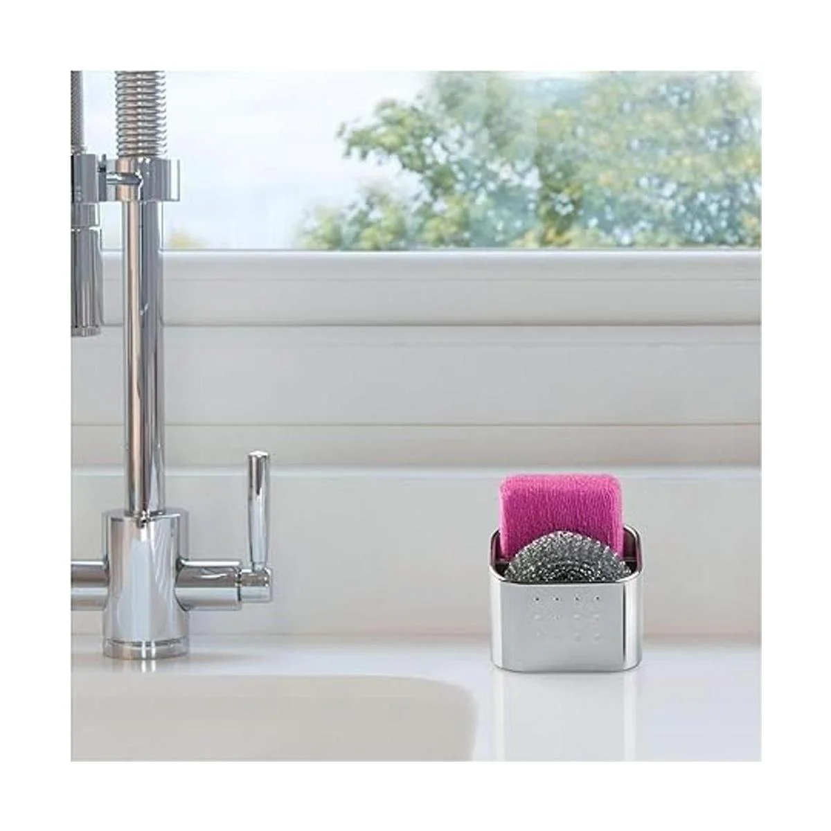 Tamaño compacto: mide 3.1 x 4 x 3.1 pulgadas y crea almacenamiento instantáneo en espacios compactos cerca del fregadero de la cocina