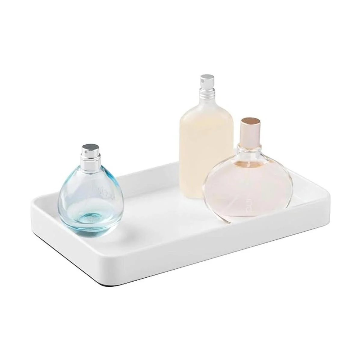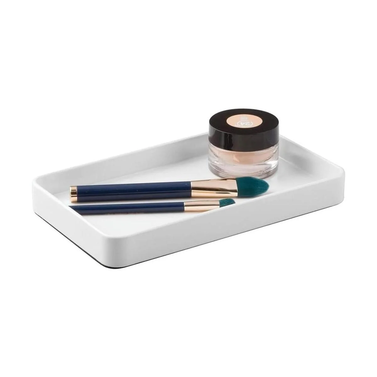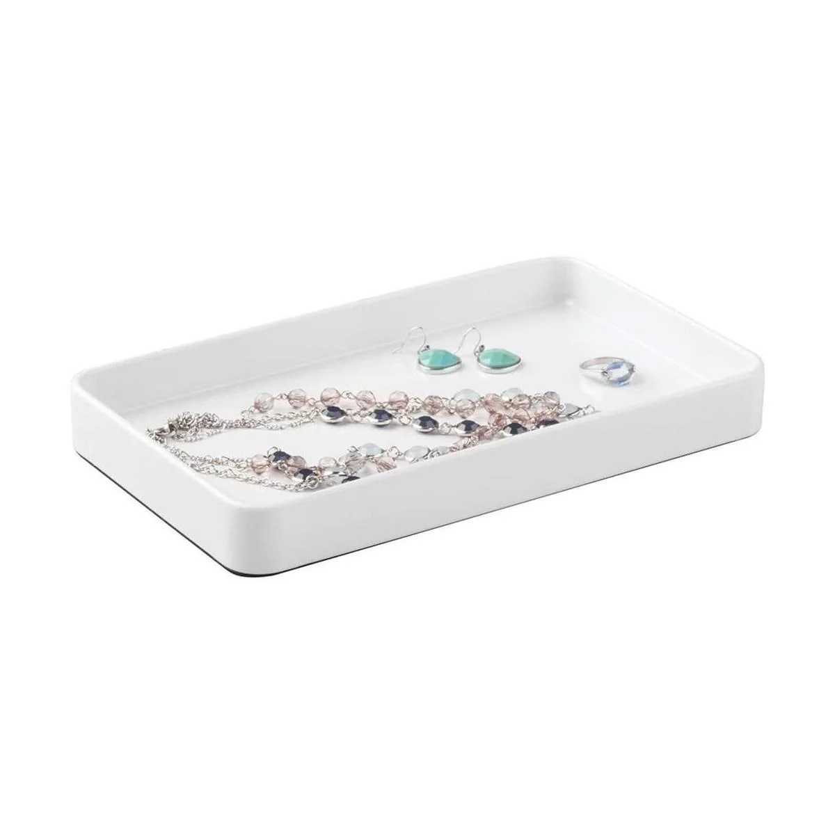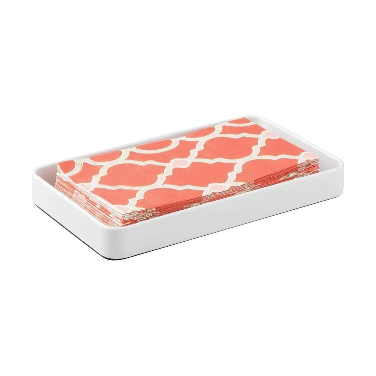 iDesign Gia Bandeja de toallas de metal para invitados, tabla de tocador antideslizante para baño, cocina, oficina, sala de manualidades, encimeras, armarios, 9.62 x 5.62 x 1.07 pulgadas, color blanco