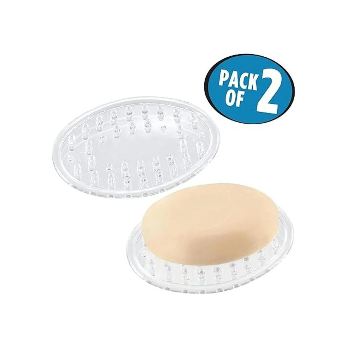 iDesign Jabonera de plástico para baño, ducha, cocina, 0.6 x 2.2 x 3.4 in, 2 unidades, transparente