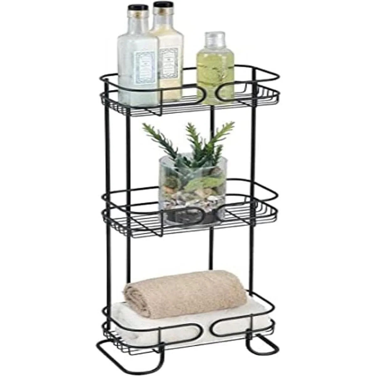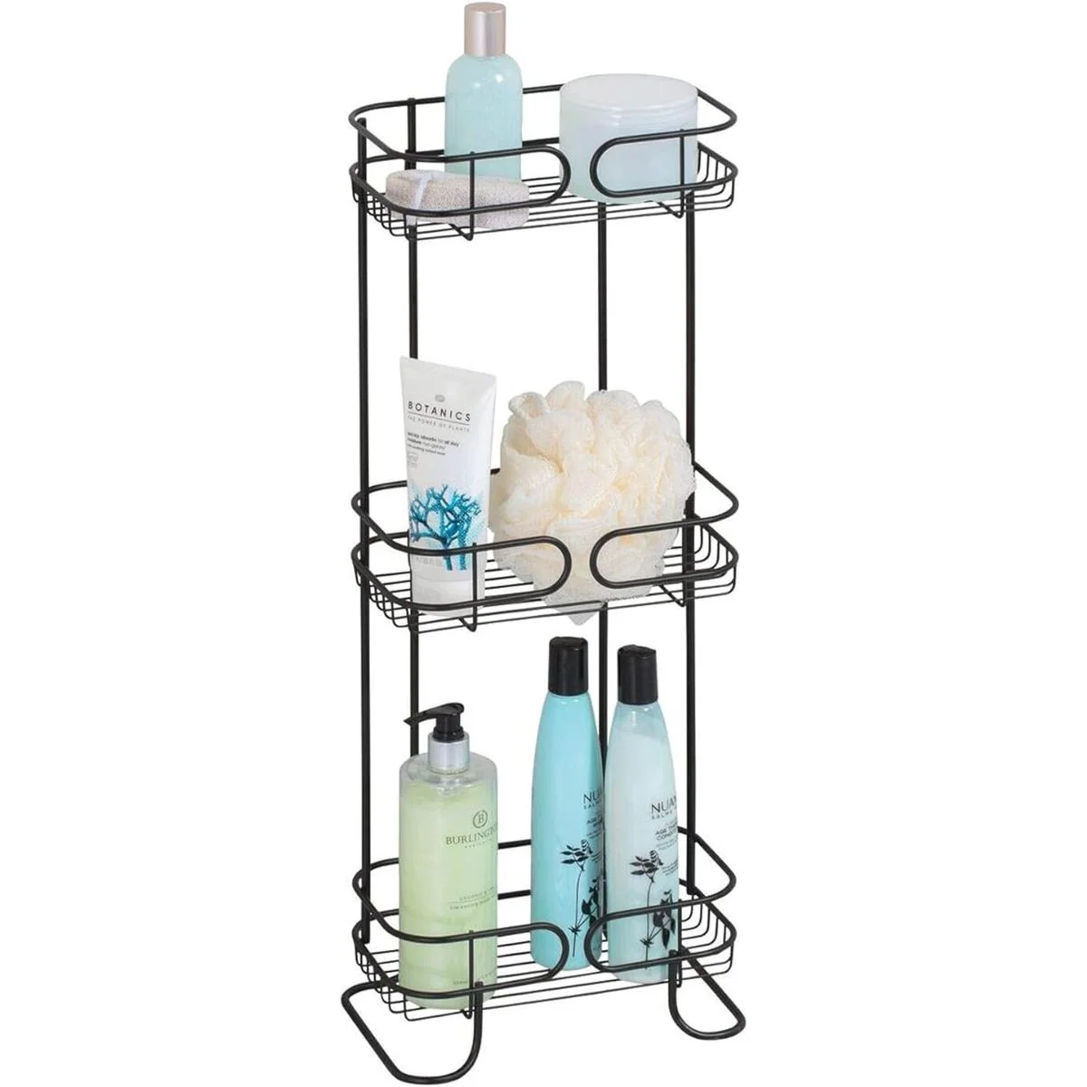 Estante organizador de 3 niveles: proporciona tres niveles de espacio de almacenamiento para necesidades de baño como botellas de champú y acondicionador, lavado corporal, jabón, cepillos de dientes, maquillaje, toallas y mucho más