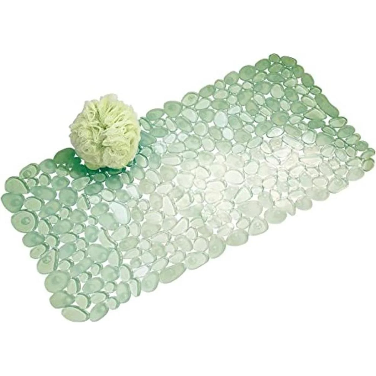 iDesign Pebblz Alfombrilla de baño antideslizante con succión para ducha, bañera, color verde, 26 x 13.5 pulgadas
