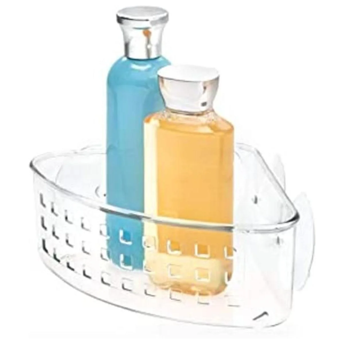 iDesign Soporte de succión de plástico para baño, cesta organizadora de ducha en las esquinas para esponjas, fregaderos, jabón, champú, acondicionador, 9 x 7 x 3.5 pulgadas, transparente