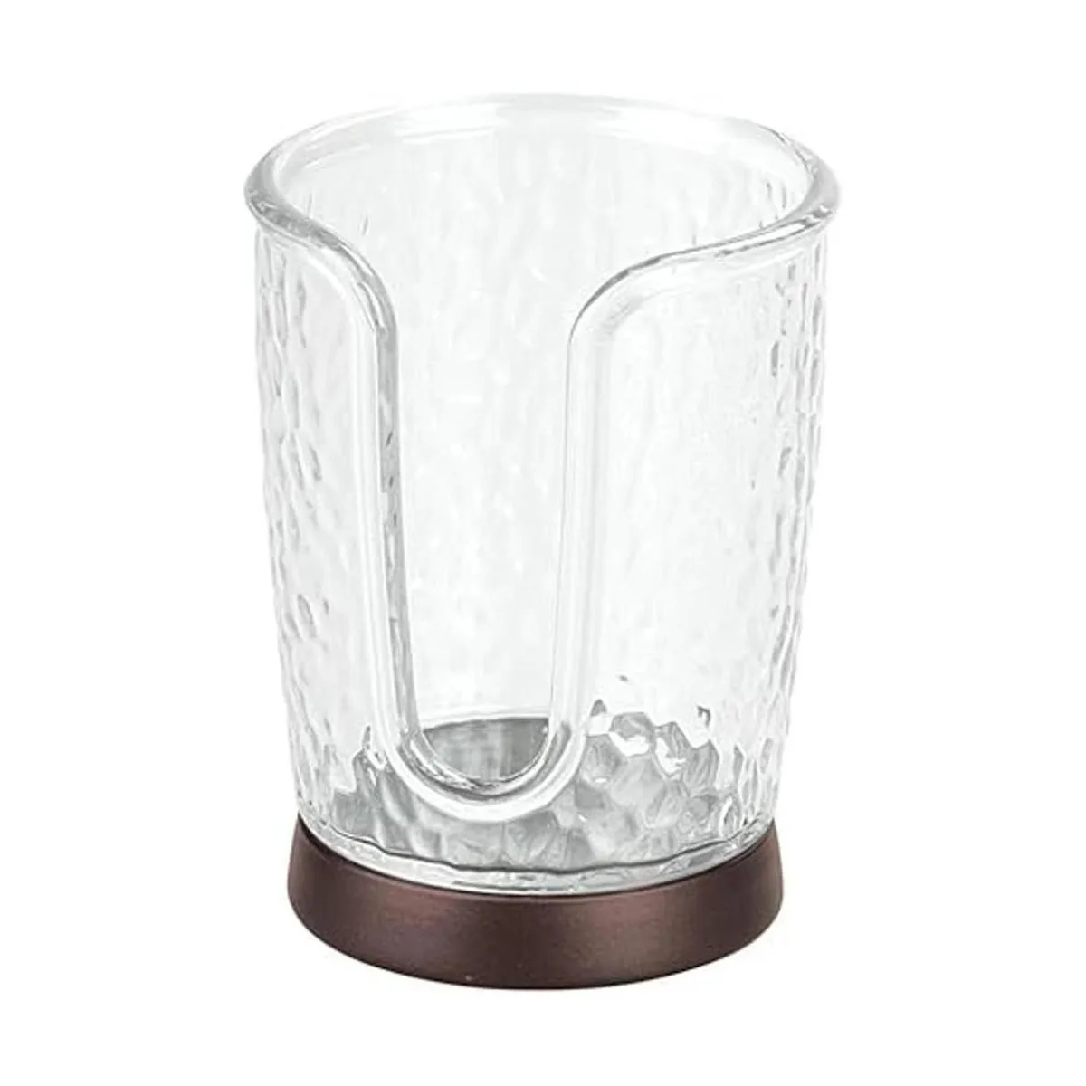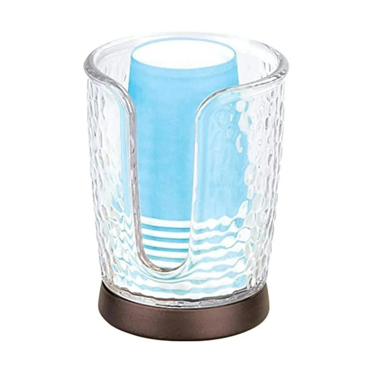 iDesign Soporte dispensador de vasos desechable de papel y plástico para maestro, invitados, tocador de baño de niños, 3.10 x 3.10 x 4 pulgadas, transparente y bronce