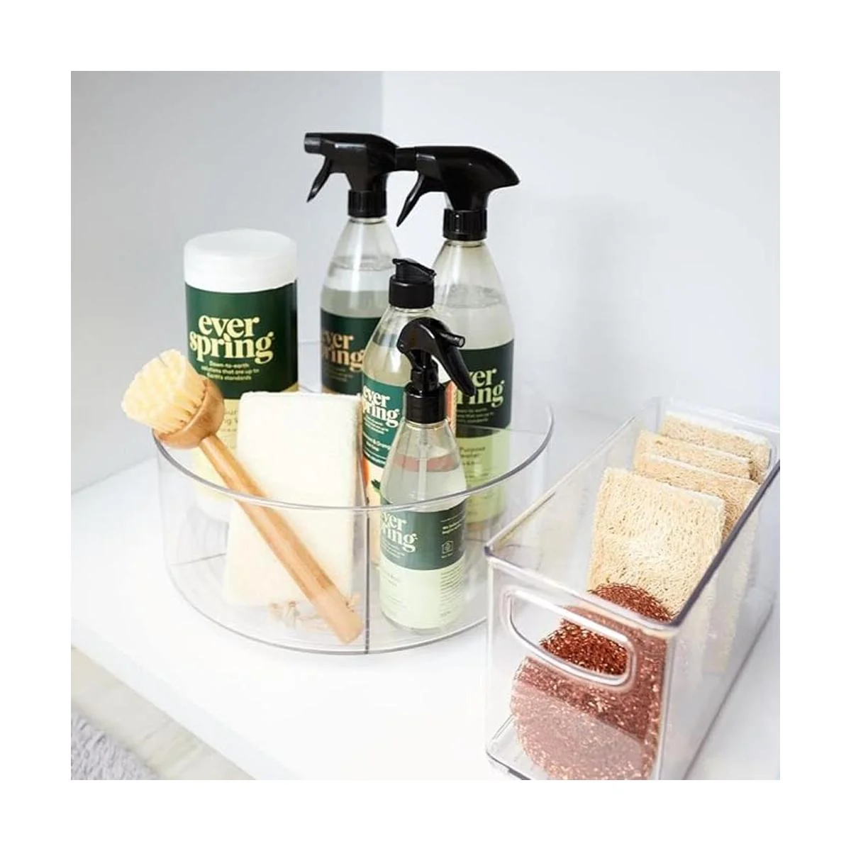 Diseño abierto con lados elevados: el diseño abierto mantiene los artículos visibles y fácilmente accesibles, mientras que los lados elevados más altos evitan que se caigan mientras giras el organizador