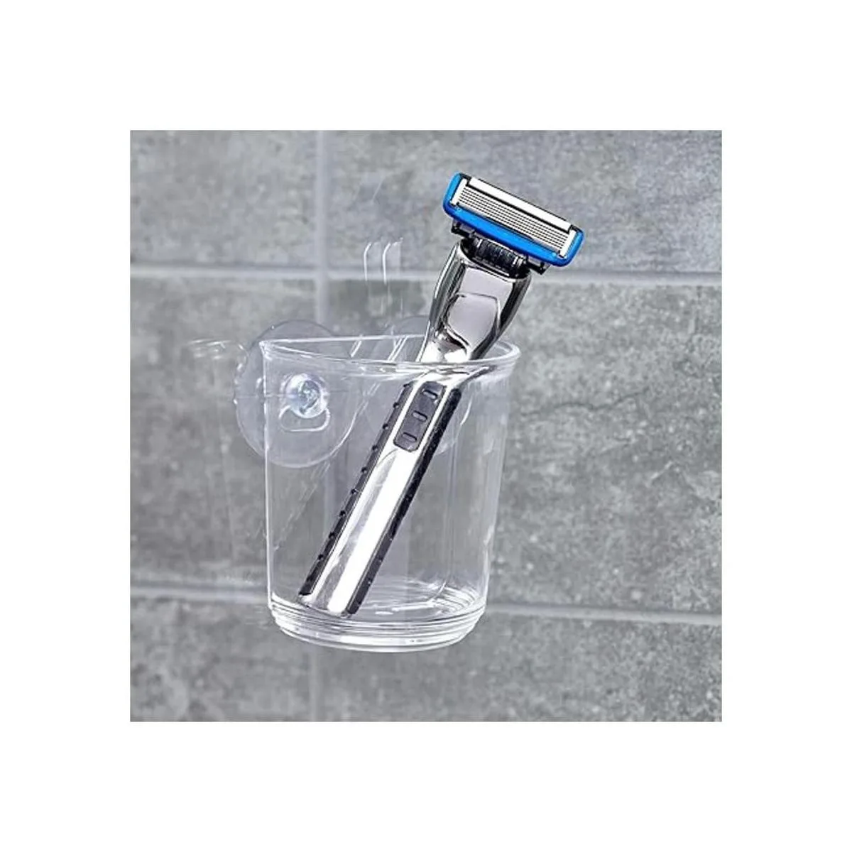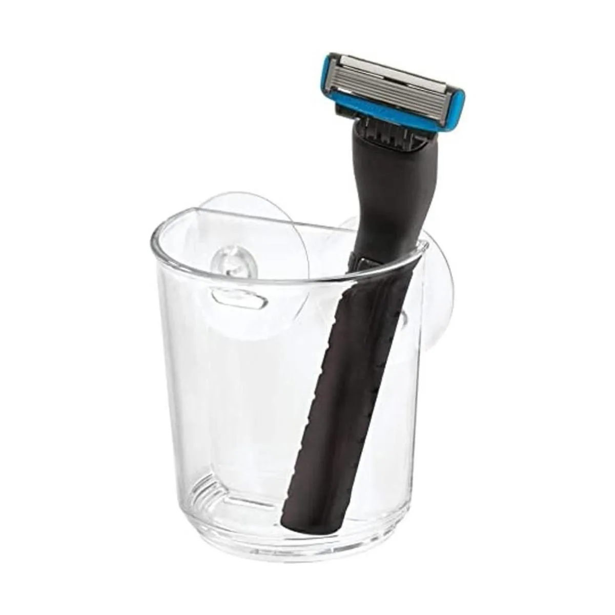 iDesign Vaso de plástico con ventosa, soporte para brochas de maquillaje, cepillos de dientes, gafas, cepillos en el baño, espejos de dormitorio, 3 x 2 x 3.5 pulgadas, transparente