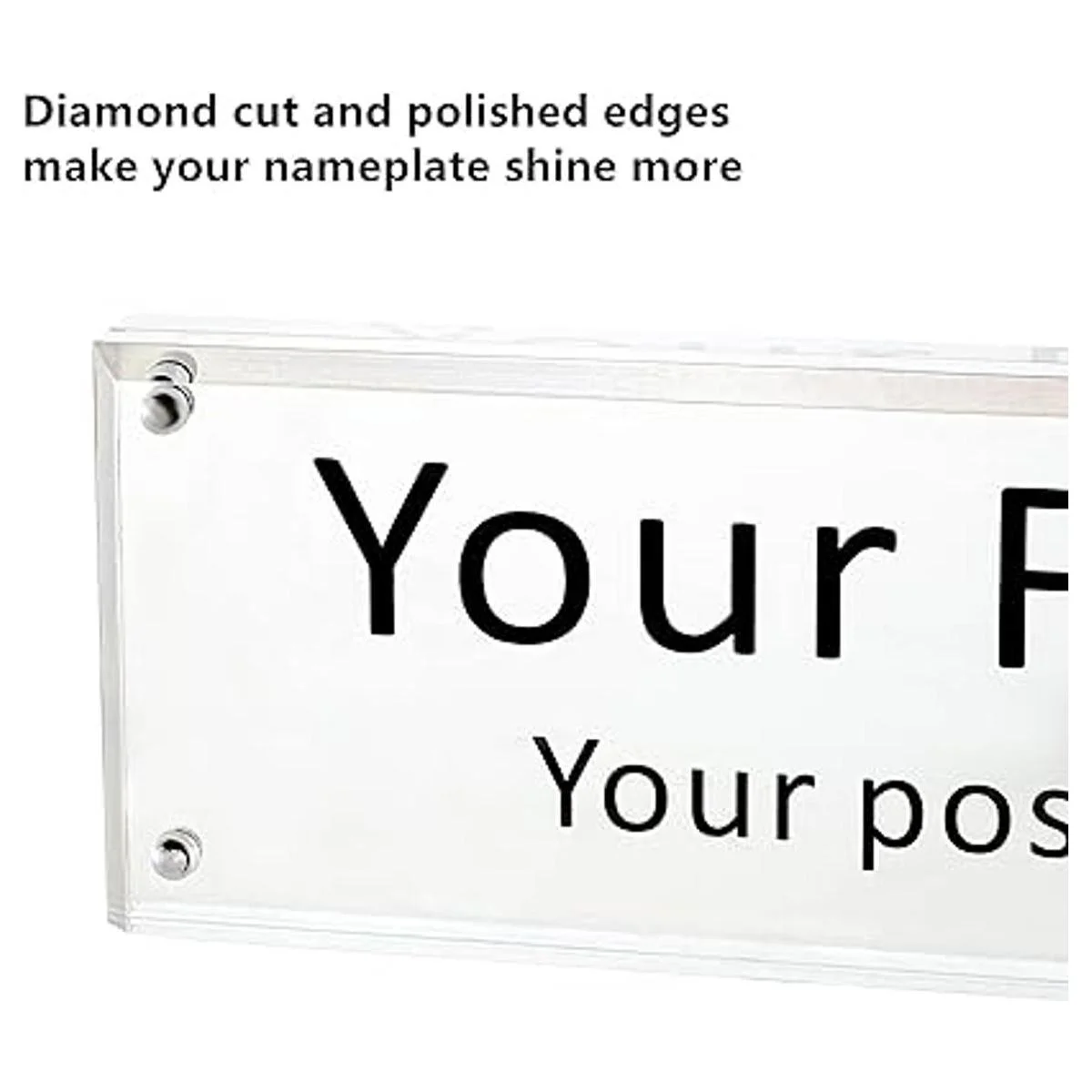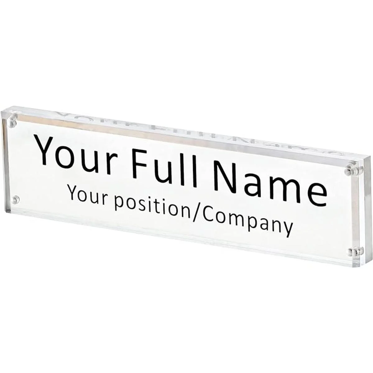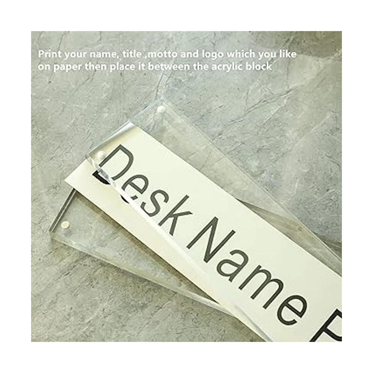 IEEK Placa de identificación de escritorio de acrílico para oficina, placa de identificación de bloque de acrílico transparente, soporte de placa de identificación de escritorio de doble cara, soporte para letreros de escritorio de negocios, bricolaje tu nombre personalizado para escritorio, 2.5 x 10 pulgadas