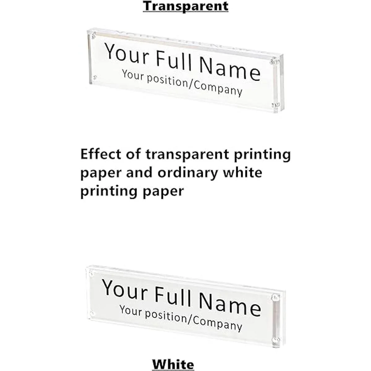 Placa de nombre de oficina de bricolaje: puedes imprimir tu nombre, título, lema y logotipo que te guste en el papel y luego colocarlo entre el bloque acrílico, un bloque de placa de identificación de escritorio personalizado ha nacido. El tamaño completo es de 2.5 x 10 pulgadas, puede contener 2.5 x 10 pulgadas, 2 x 8 pulgadas, 2 x 6 pulgadas o una imagen más pequeña dejará un borde para un flotante flotante para un efecto