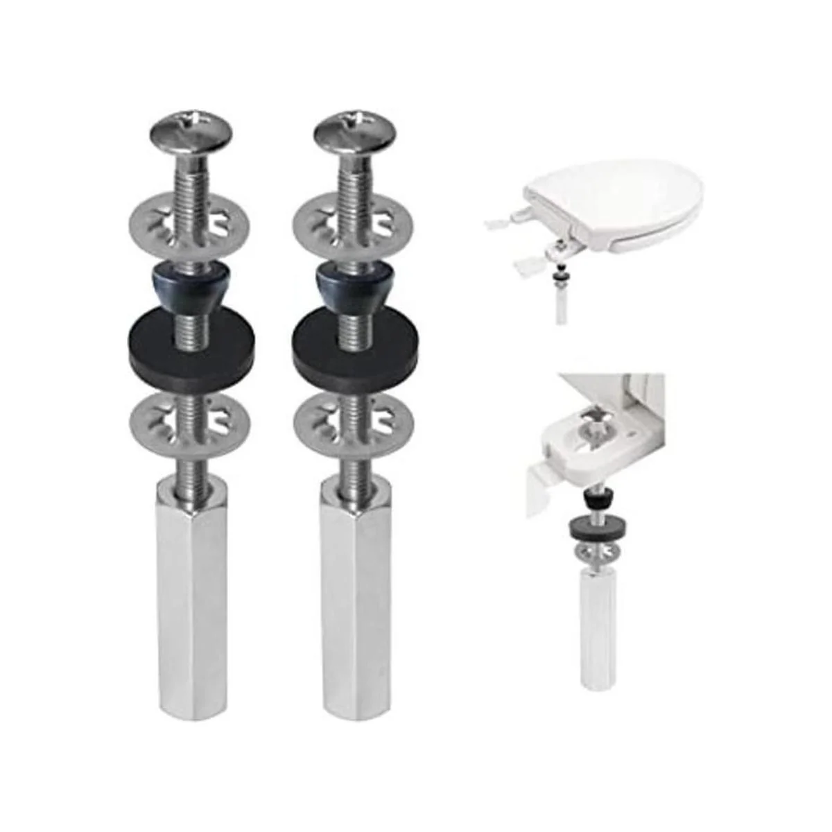 iFealClear Juego de 2 tornillos universales para asiento de inodoro, acero inoxidable resistente con tuercas de desbloqueo extra largas, juntas de arandelas de goma y fácil de instalar, tornillo de reparación de inodoro para baño