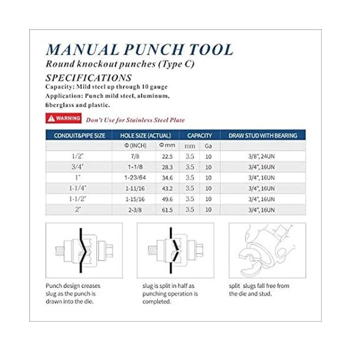 iGeelee Kit de perforador de perforación de trinquete SLUGBuster Knockout de 12 a 2 pulgadas 12 a 2 pulgadas, juego de cortadores de orificios eléctricos para conductos KO CC60